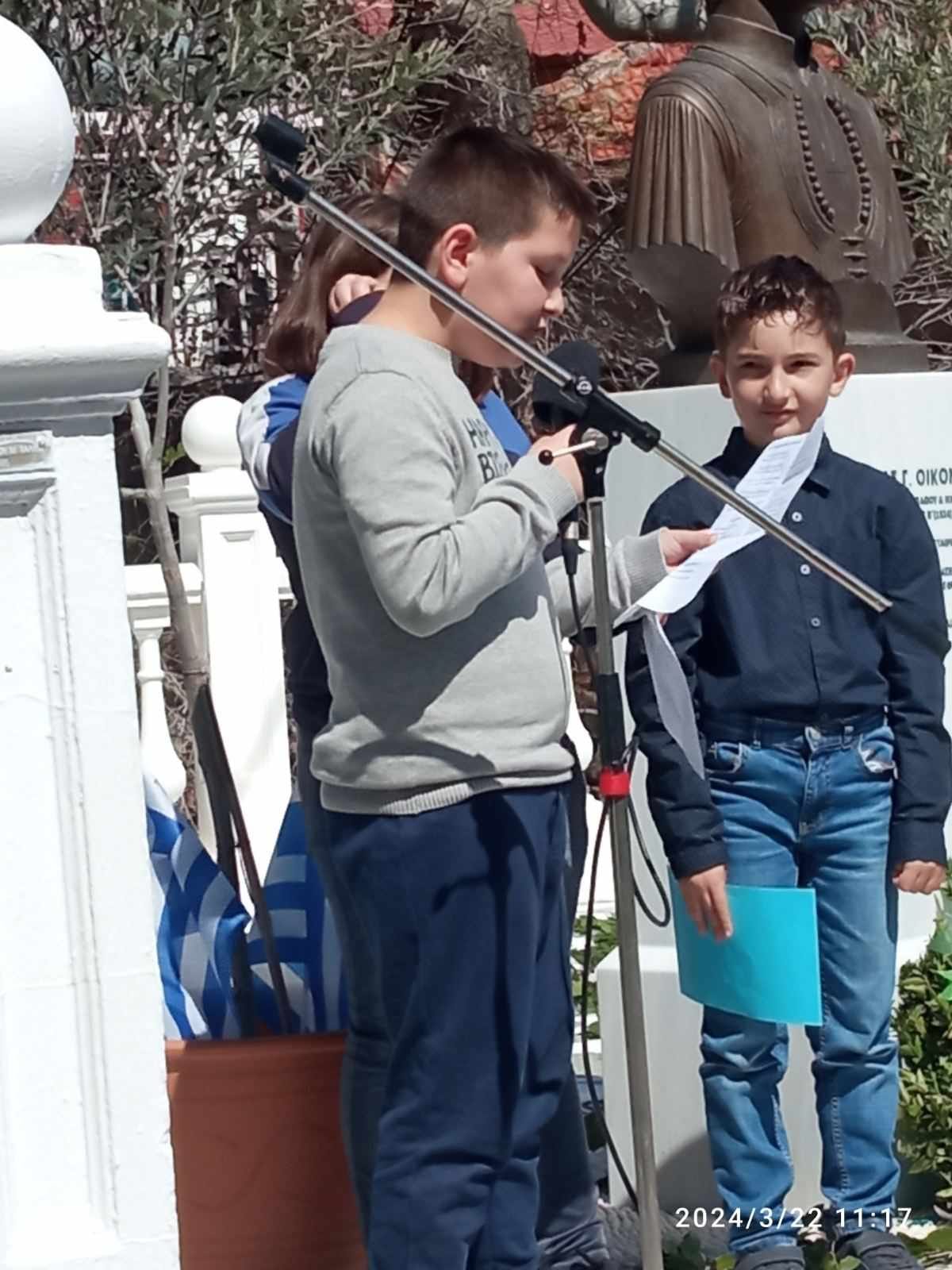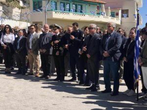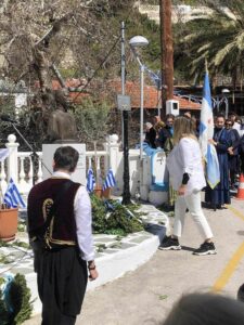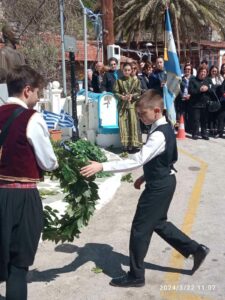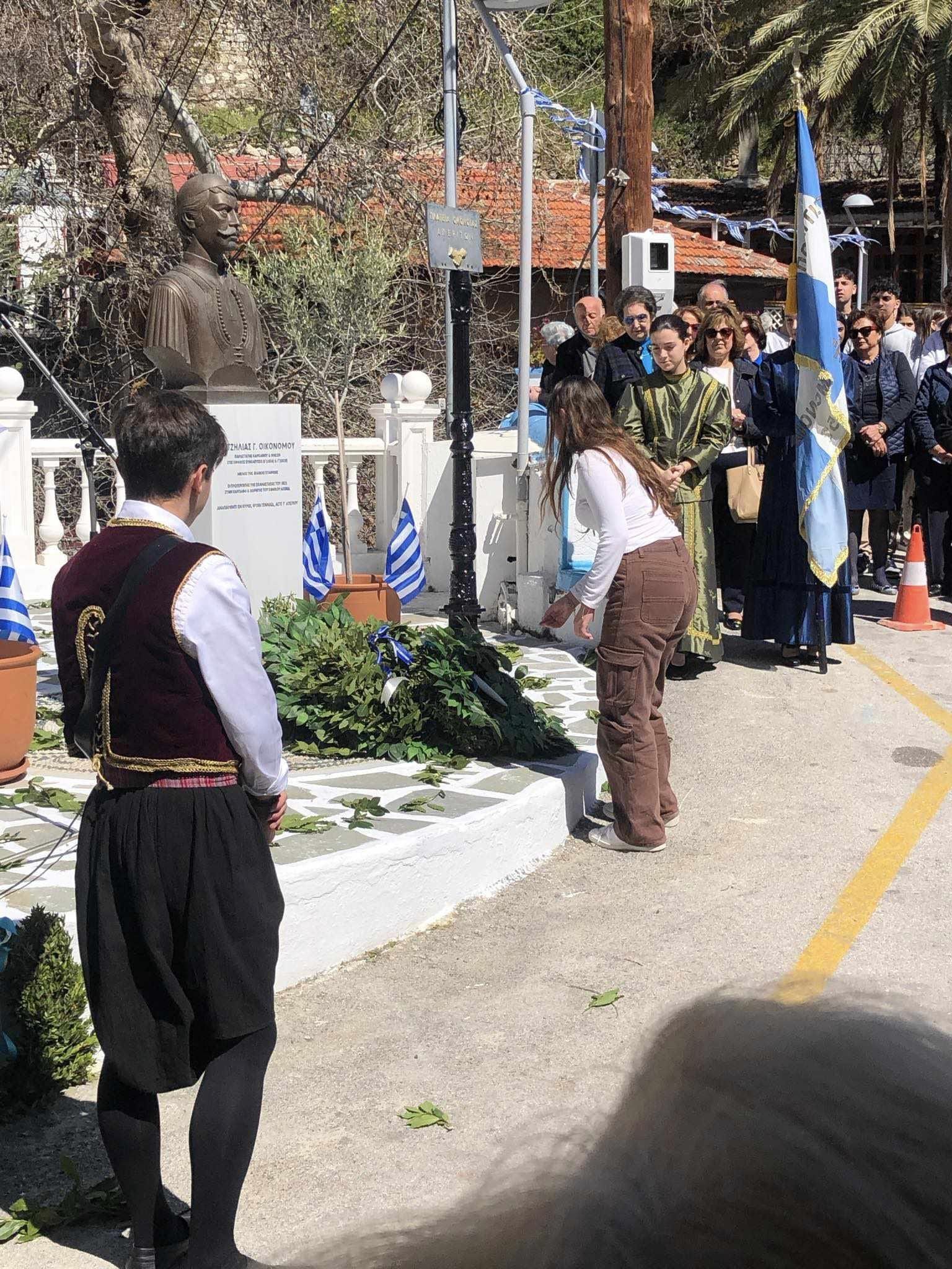 Ακολούθησε επιμνημόσυνη δέηση στο μνημείο του Χατζηλία Οικονόμου, κατάθεση στεφάνων, ομιλία από την εκπαιδευτικό κα Αναστασία Βδοκάκη, πρώην Διευθύντρια Δημοτικού σχολείου Απερίου, εκφώνηση έμμετρης ποίησης από την πρώην εκπαιδευτικό και Πρόεδρο του Παγκαρπαθιακού συλλόγου Ρόδου κ.Ειρήνη Γιάννουστα (στίχοι Φωτεινής Σταματιάδου-Γεργατσούλλη),ποιήματα από παιδιά του Δημοτικού σχολείου Απερίου και ανάκρουση Εθνικού Ύμνου.
