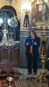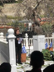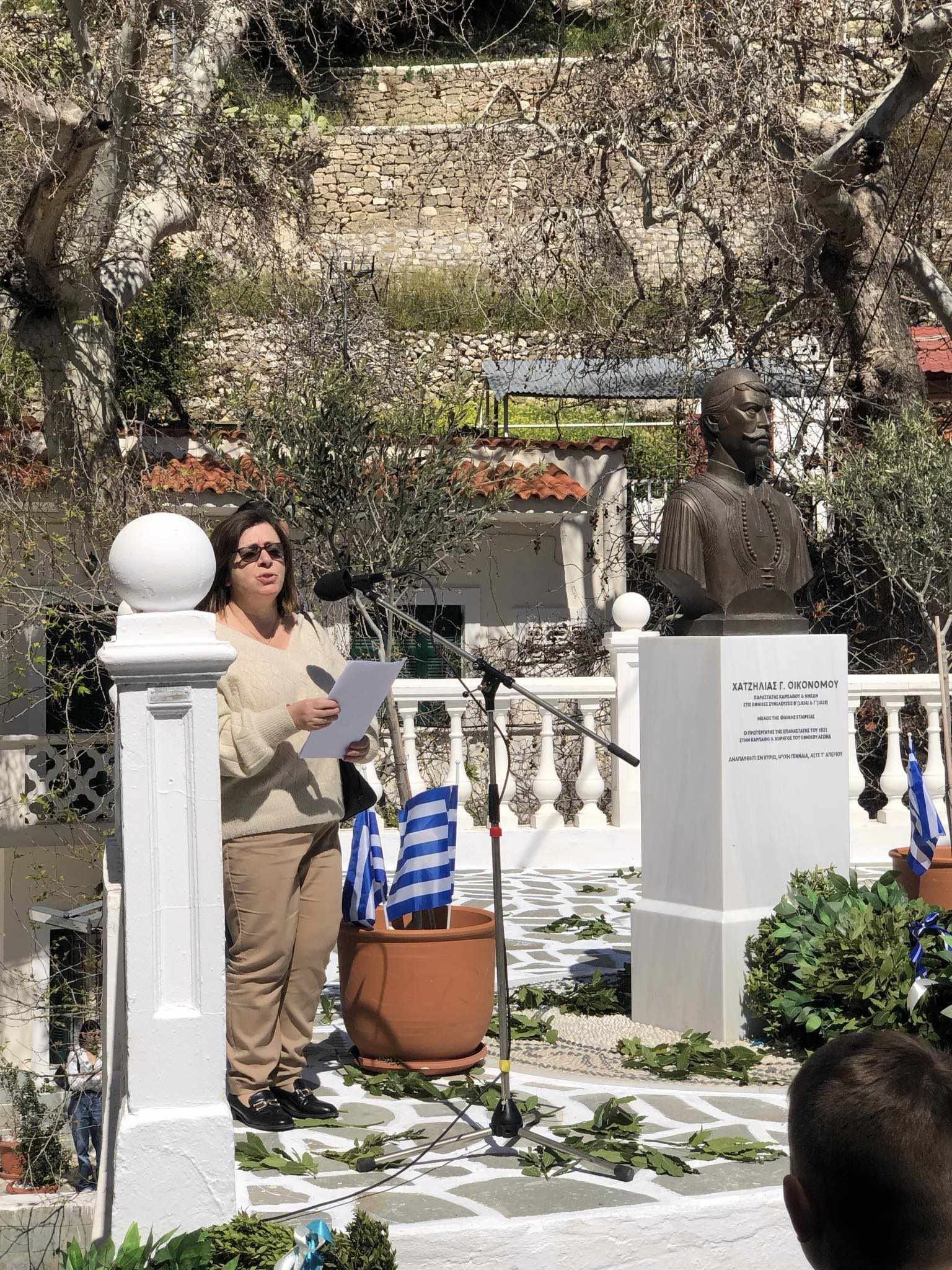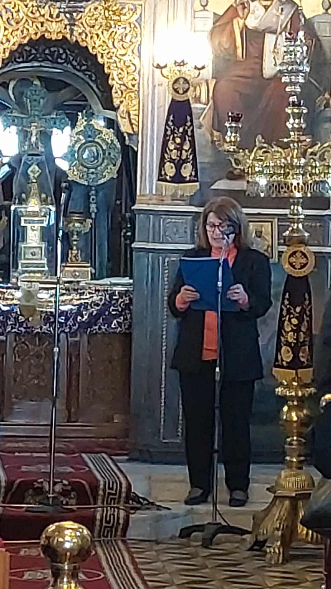 Μετά την δοξολογία εκφωνήθηκε ο πανηγυρικός της ημέρας από την Διευθύντρια του Γενικού Λυκείου Απερίου κ. Σταυρούλα Τριανταφύλλου.