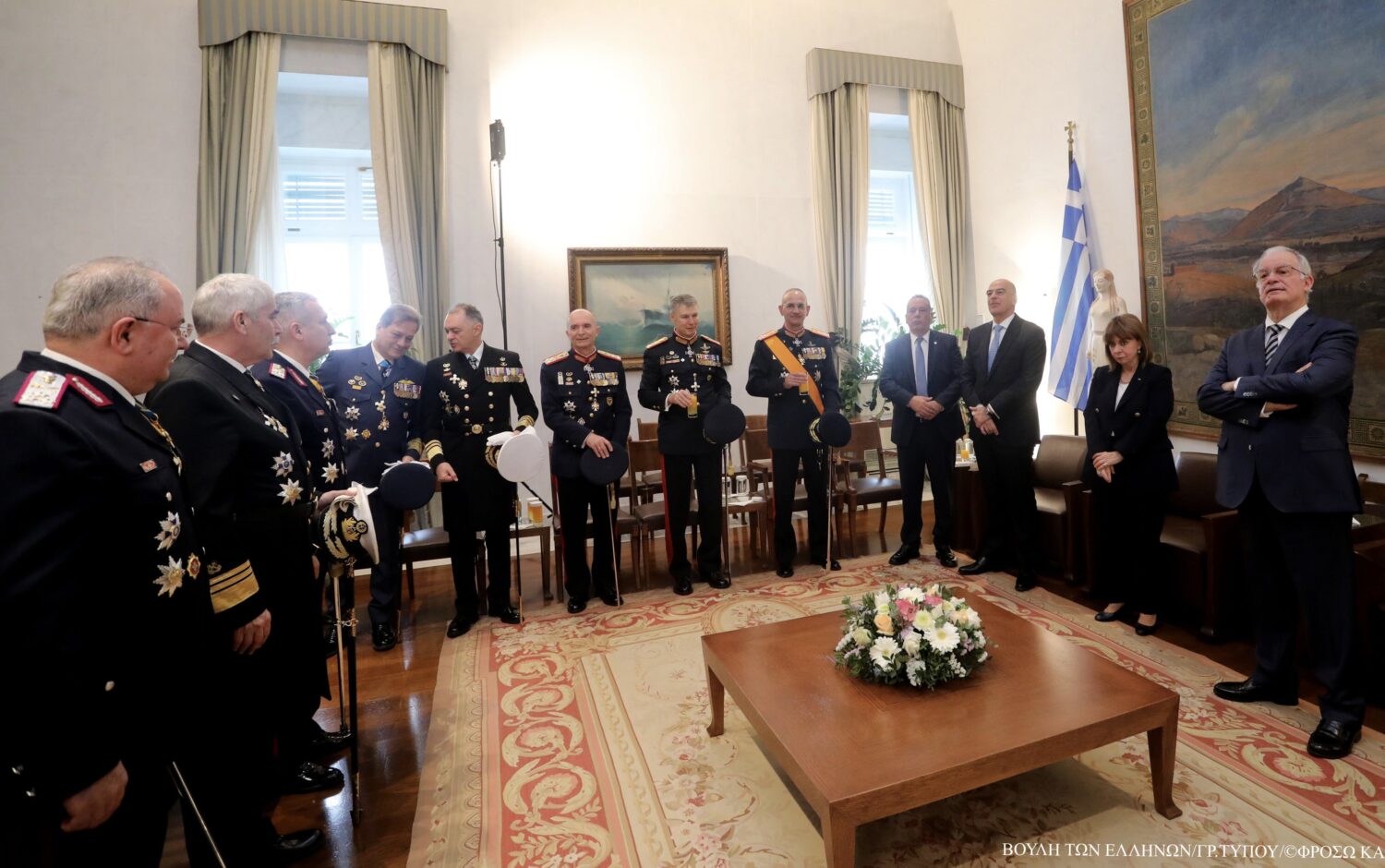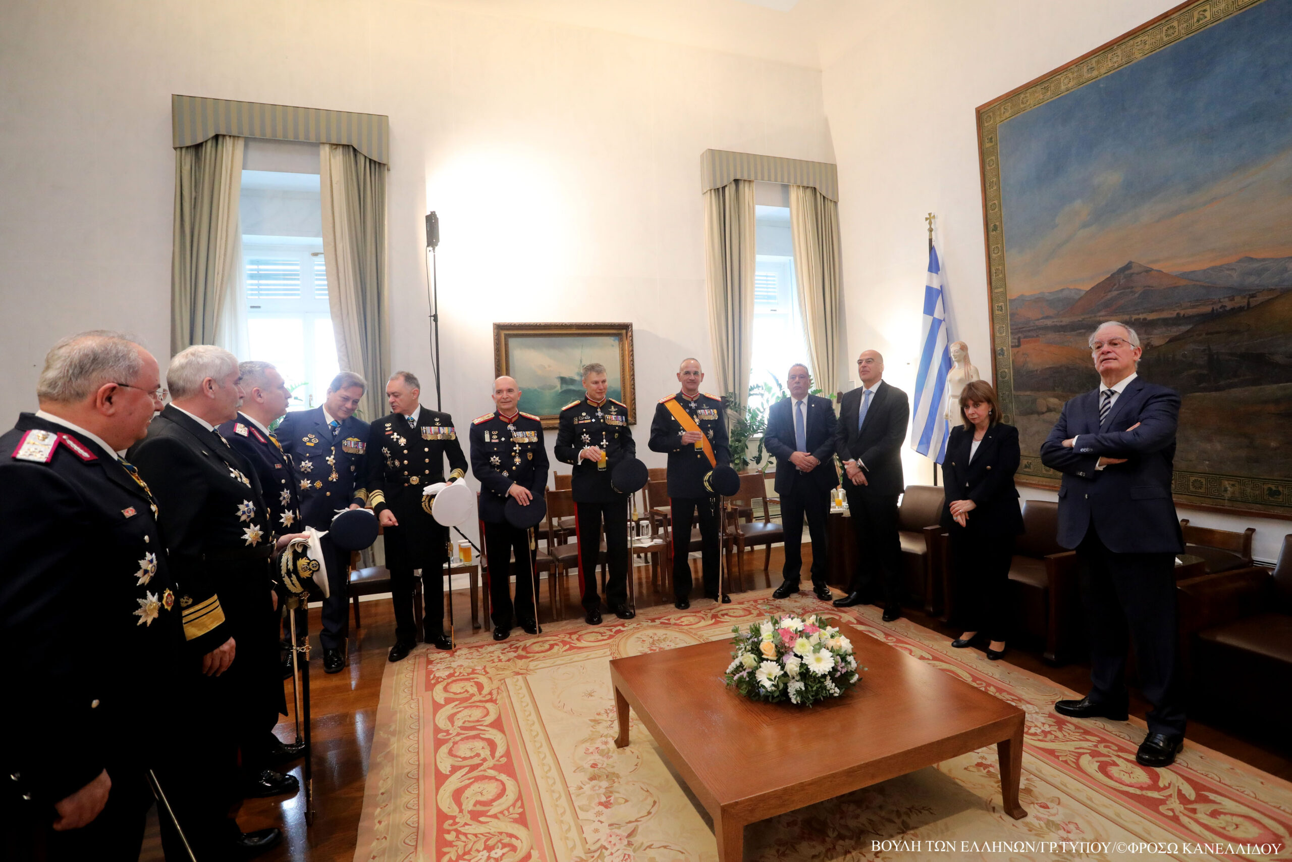 Μετά το πέρας της δοξολογίας, ο κ. Τασούλας υποδέχθηκε και φιλοξένησε στο Κοινοβούλιο την Προέδρο της Δημοκρατίας, κυρία Κατερίνα Σακελλαροπούλου, τον υπουργό Εθνικής Άμυνας, κ. Νίκο Δένδια ως εκπρόσωπο του Πρωθυπουργού Κυριάκου Μητσοτάκη, τον Περιφερειάρχη Αττικής, κ. Νίκο Χαρδαλιά, τον υπουργό Άμυνας της Κυπριακής Δημοκρατίας κ. Βας. Πάλμα, , τον Εκπρόσωπο Αρχιεπισκόπου Αθηνών και πάσης Ελλάδος Πανιερώτατο Μητροπολίτη Θαυμακού Ιάκωβο, τον πρόεδρο του ΠΑ.ΣΟ.Κ. – Κινήματος Αλλαγής κ. Νικόλαο Ανδρουλάκη, τον Δήμαρχο Αθηναίων κ. Χάρη Δούκα, τον αρχηγό του Γενικού Επιτελείου Εθνικής Άμυνας κ. Δ. Χούπη, καθώς και την ηγεσία των Ενόπλων Δυνάμεων, Αντιπτέραρχο Δημοσθένη Γρηγοριάδη (Α/ΓΕΑ), Γεώργιο Κωστίδη (ΓΕΣ) και Ελευθέριο Κατάρα (Α/ΓΕΝ), (Α/των Σωμάτων Ασφαλείας αλλά και της ανώτατης ηγεσίας του Δικαστικού Σώματος.