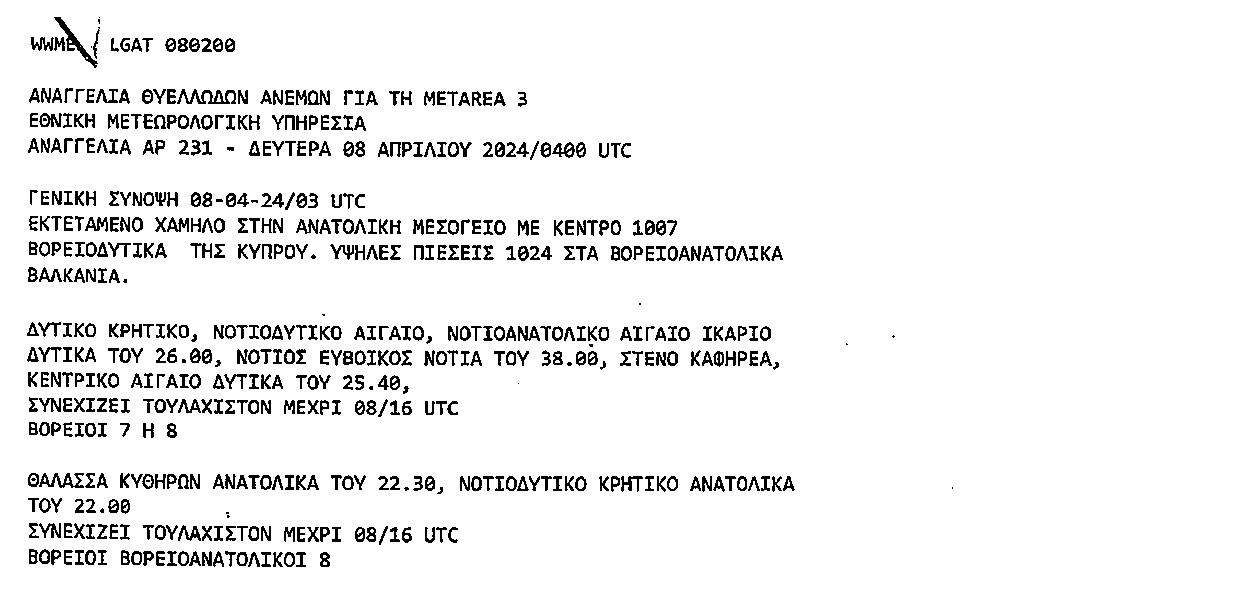 Το Λιμεναρχείο Καρπάθου εξέδωσε ανακοίνωση να αυξηθούν τα μέτρα λόγω αναγγελία θυελλωδών ανέμων σήμερα 8/4/2024.