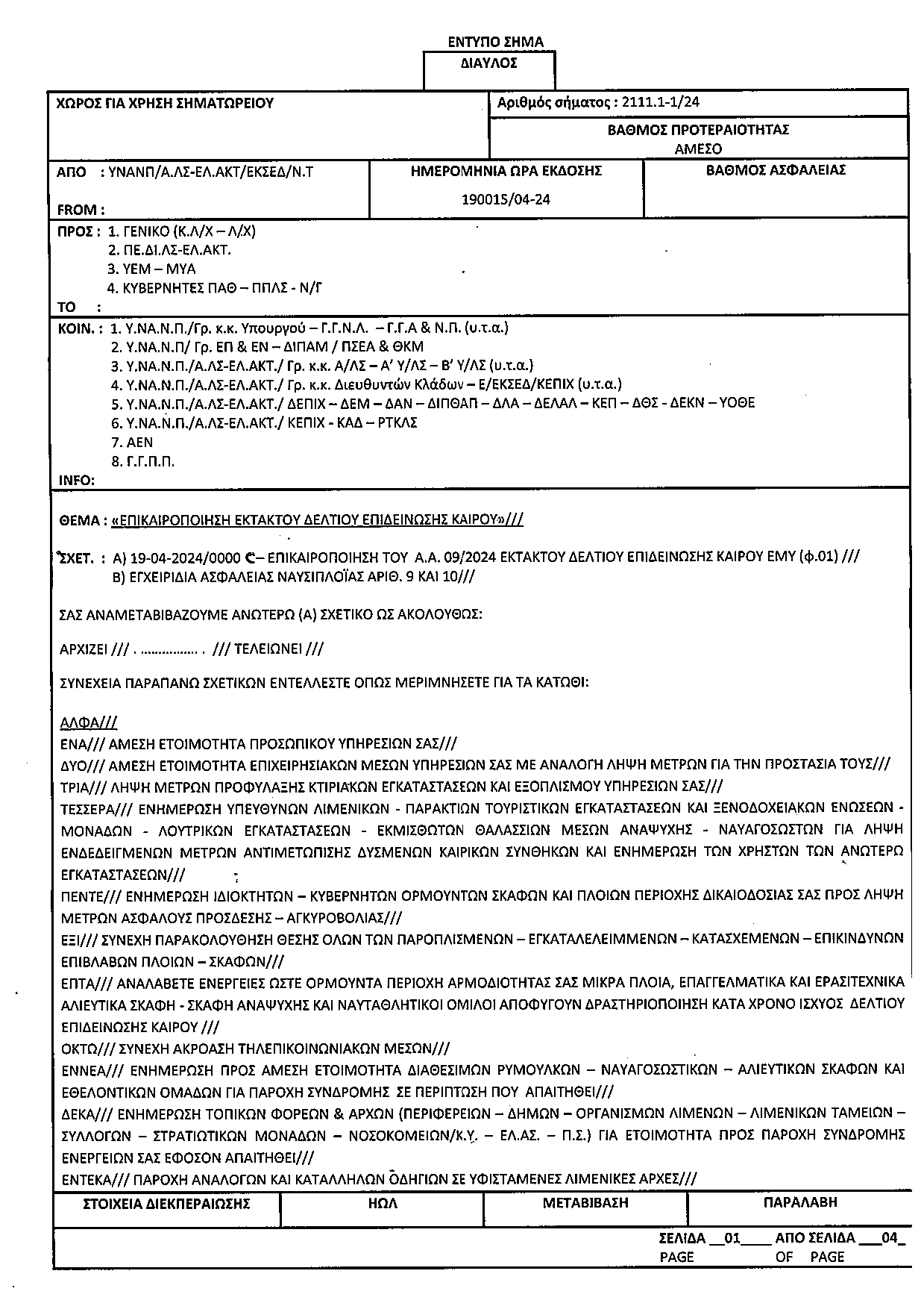 Περισσότερες λεπτομέρειες για την εξέλιξη του καιρού στα τακτικά και έκτακτα δελτία καιρού, στην ιστοσελίδα της ΕΜΥ (www.emy.gr). Η επικαιροποίηση των προγνώσεων θα γίνεται ανά δωδεκάωρο.