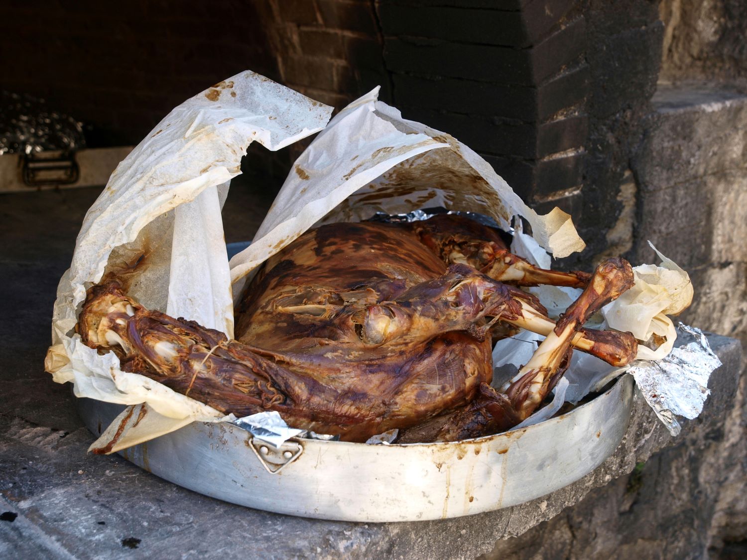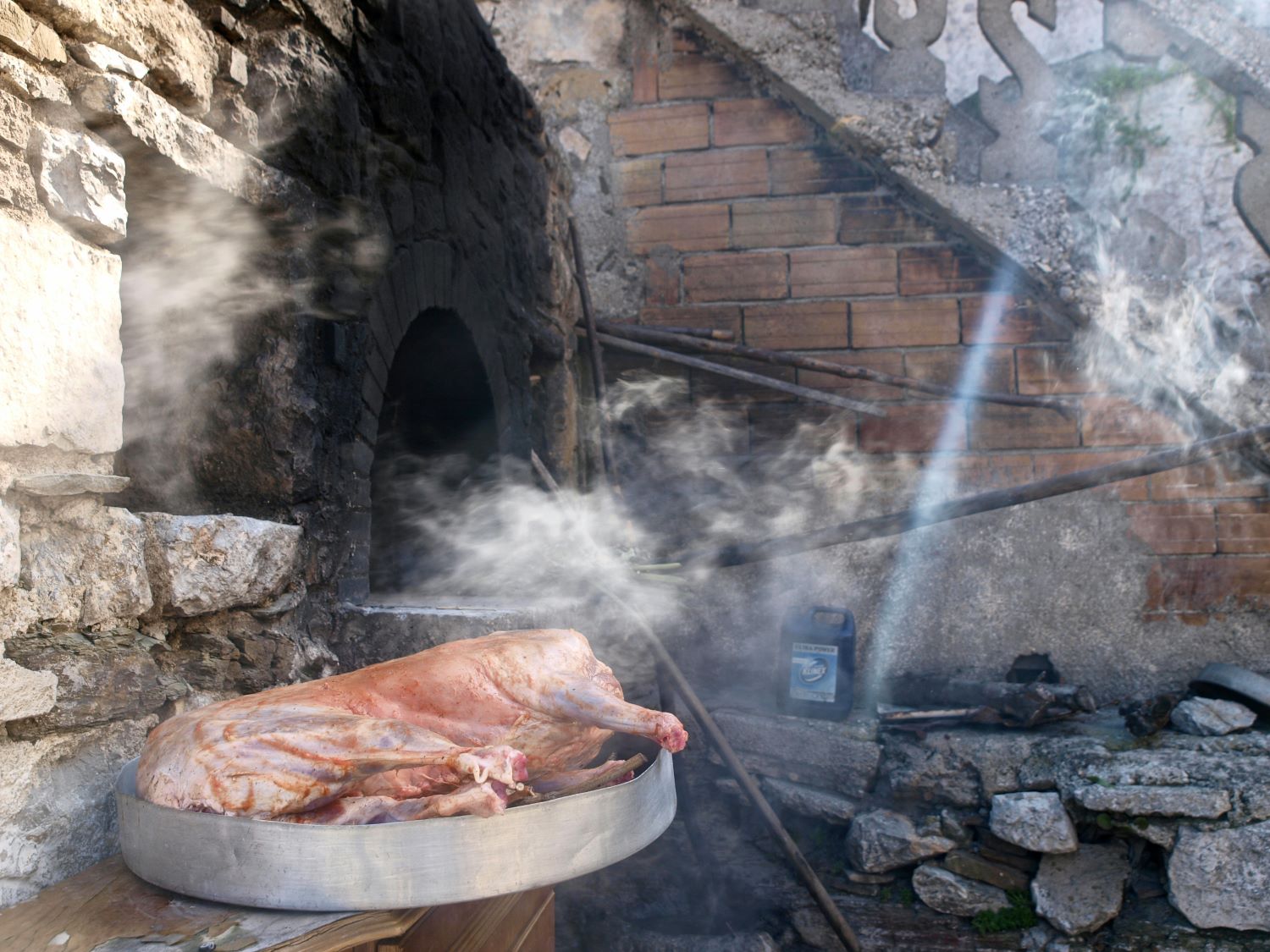 Όμως, ο Νίκος και η Μαρίνα μας είχαν καλέσει να πάμε σε άλλη γειτονιά και σε άλλο φούρνο. Όσο πιο κοντά πλησιάζεις στην αρχέγονη τροφή, τόσο η θωριά της είναι πιο αποκαλυπτική για την καταγωγή της. Έτσι, όπως βρίσκεται ολάκαιρο το αρνί ξαπλωμένο μέσα στο ταψί, δεν σου αφήνει καμιά αμφιβολία για το τι ήταν πριν γίνει θυσία στη γιορτή· και πρέπει να είσαι προετοιμασμένος να το αντιμετωπίσεις. Για τους ανθρώπους που ζουν σε συνάφεια με την τροφή τους, η παραδοχή αυτή είναι δεδομένη, ήδη, από τη μεγαλύτερη επανάσταση που σκέφτηκε ο άνθρωπος, την εξημέρωση των ζώων και την αναπαραγωγή τους για κατανάλωση, και την καλλιέργεια των φυτών. Είναι απολύτως σαφές τι περιέχει το πιάτο τους.