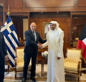 Minister of Foreign Affairs, George Gerapetritis, visited Kuwait today, where he met with the Minister of Foreign Affairs, Abdullah Ali Al-Yahya. Minister Gerapetritis discussed, also, investment opportunities in Greece with the Director General of “Kuwait Direct Investment Promotion Authority”, Sheikh Meshaal Jaber Al Ahmad Al Sabah and with the Managing Director of “Kuwait Investment Authority”, Ghanem Suleiman Al-Ghenaiman.