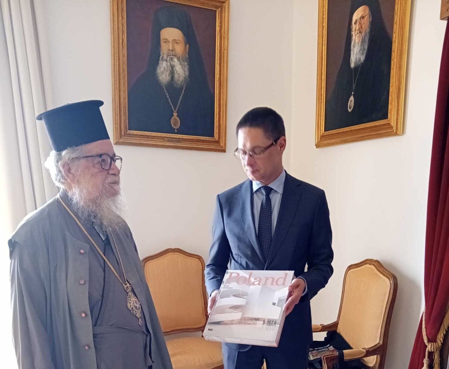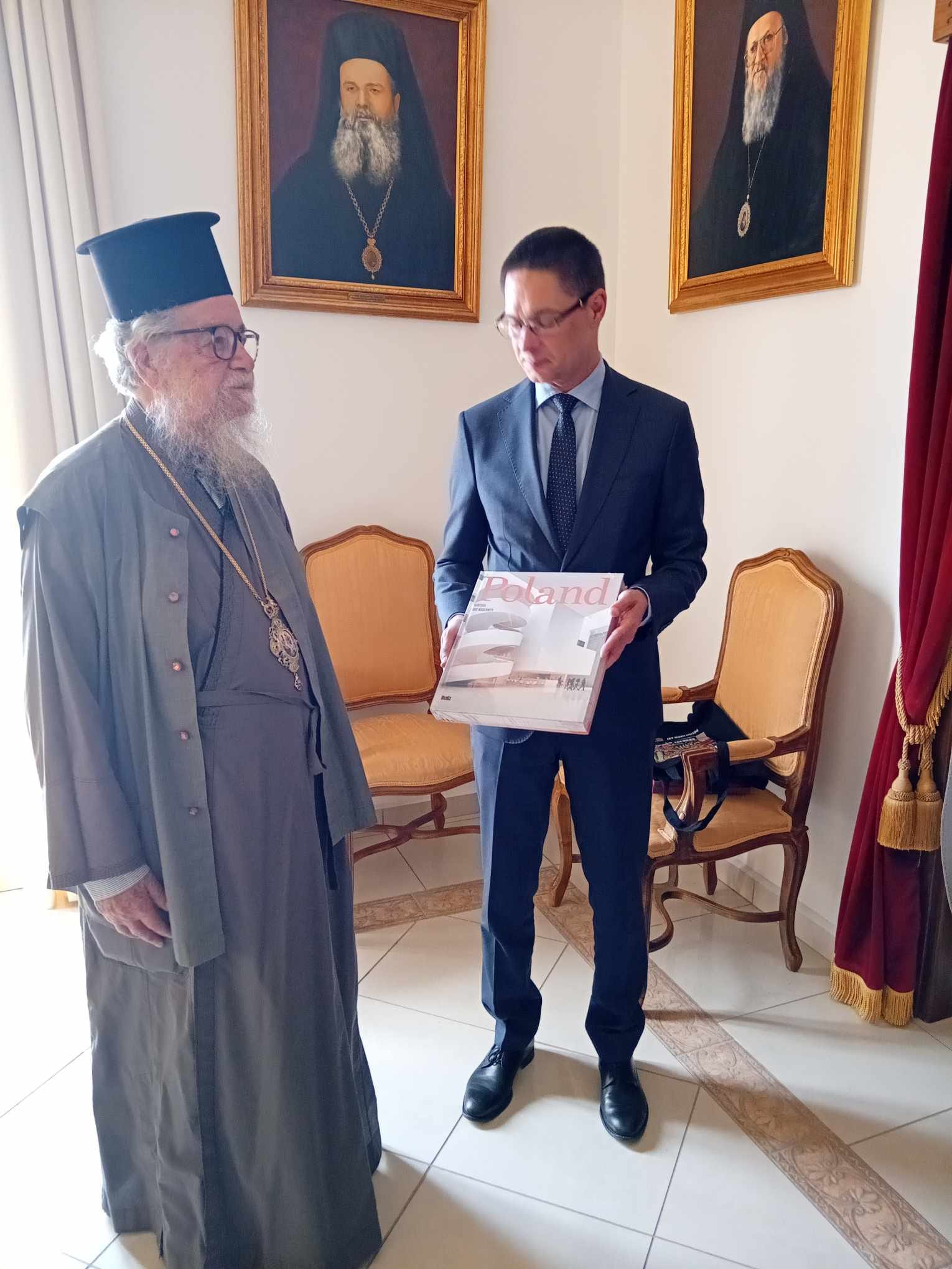 Τον συνόδευσαν ο Πρόεδρος του Πολωνοελληνικού Βιομηχανικού και Εμπορικού Επιμελητηρίου κ.Γεώργιος Αθανασιάδης και εκπρόσωπος της Πολωνικής Κοινότητας στην Κάρπαθο.