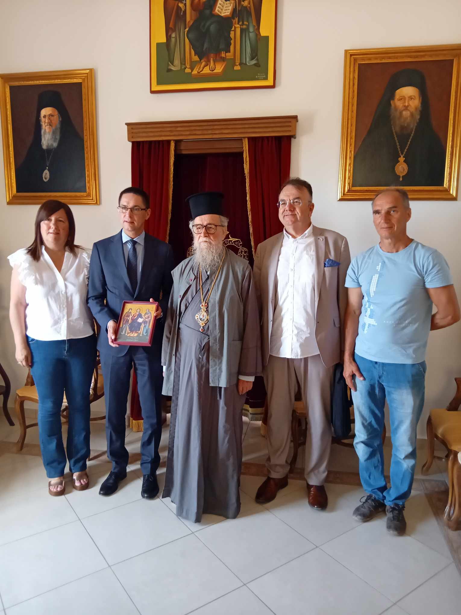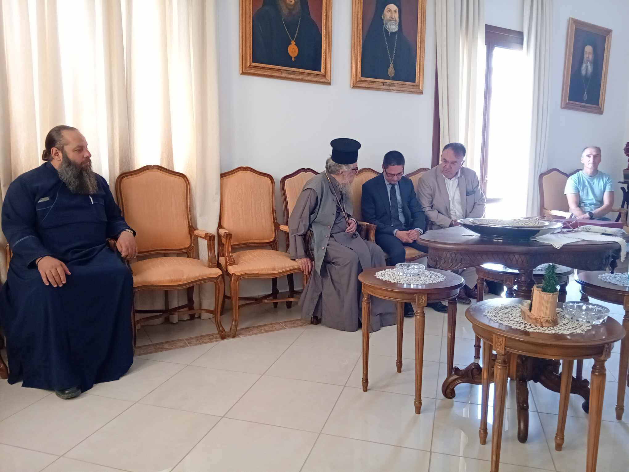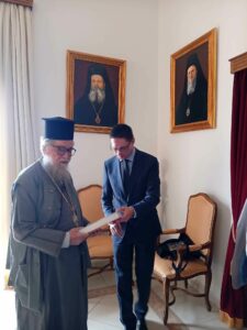 Πρώτος σταθμός της επίσκεψης του ήταν το Μητροπολιτικό Μέγαρο, όπου τον υποδέχτηκε ο Σεβασμιώτατος κ.κ. Αμβρόσιος και ιερείς της Μητροπόλεως.