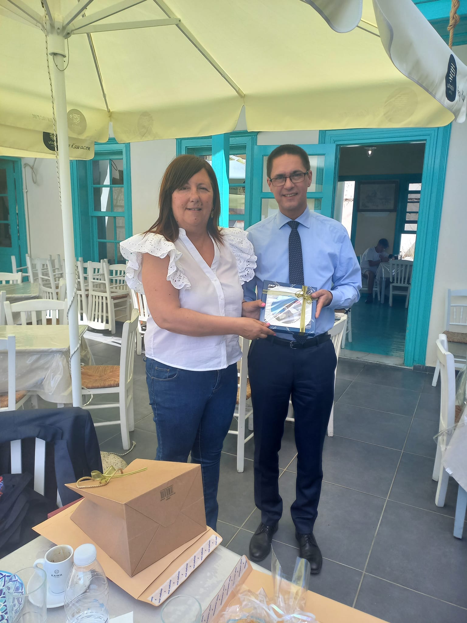 Ακολούθησε κέρασμα από την Πρόεδρο της Κοινότητας κ. Πόπη Λαμπρινού -Λαδή και δόθηκε ένα συμβολικό δώρο στον κ.Πρέσβη σαν ενθύμιο της επισκέψης του στο χωριό μας.