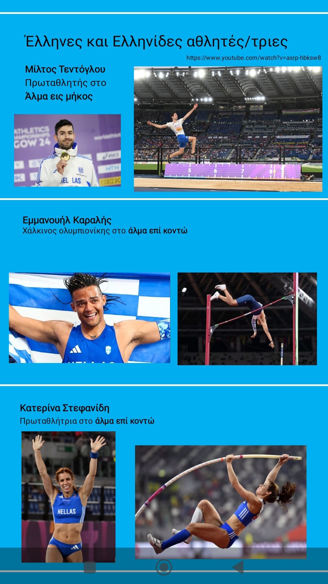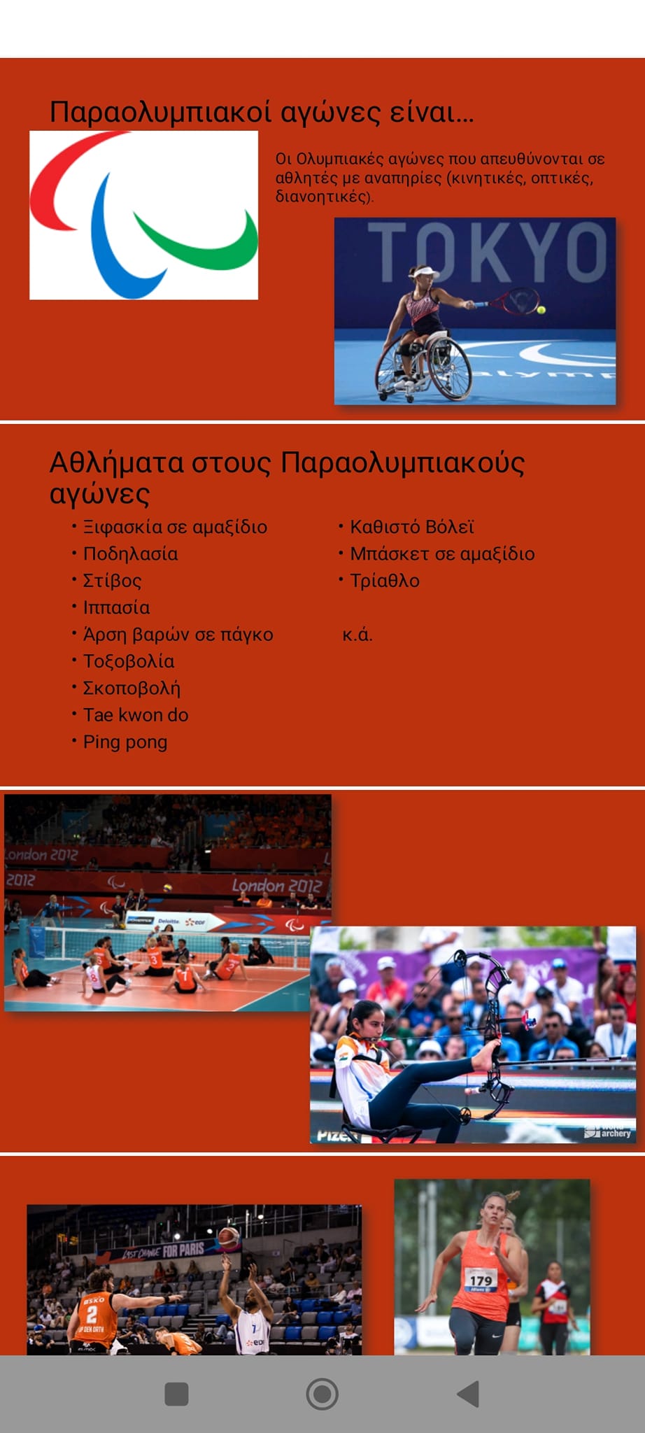 Μέσα από τη συζήτηση-η οποία πλαισιώθηκε από μια άψογη παρουσίαση που επιμελήθηκε ο δάσκαλός μας, κ Άγγελος Στουμπής Aggelos Stoubis πολλά και επίκαιρα ήταν τα θέματα που απασχόλησαν τα παιδιά και πολλά τα ουσιαστικά μηνύματα που “περάστηκαν”….. Μιλήσαμε για τον αθλητισμό, για τον συμβολισμό των κύκλων των Ολυμπιακών Αγώνων, τους Παραολυμπιακούς αγώνες, τον σεβασμό στον συναγωνιστή, τη δύσκολη διαδρομή των αθλητών με τη συνεχή εξάσκηση και τις θυσίες που απαιτούνται....