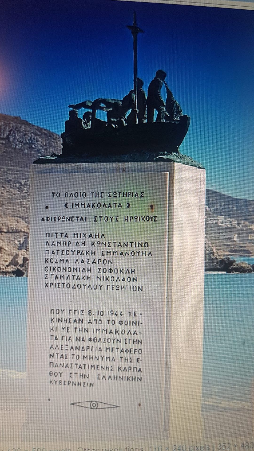 Εφτά θαρραλέα παλληκάρια επιβιβάστηκαν την 10η Οκτωβρίου 1944 στην μικρή βάρκα “ΙΜΜΑΚΟΛΑΤΑ” μήκους 7 μέτρων με μηχανή 6 ίππων και μέγιστη ταχύτητα 4 κόμβων την ώρα.