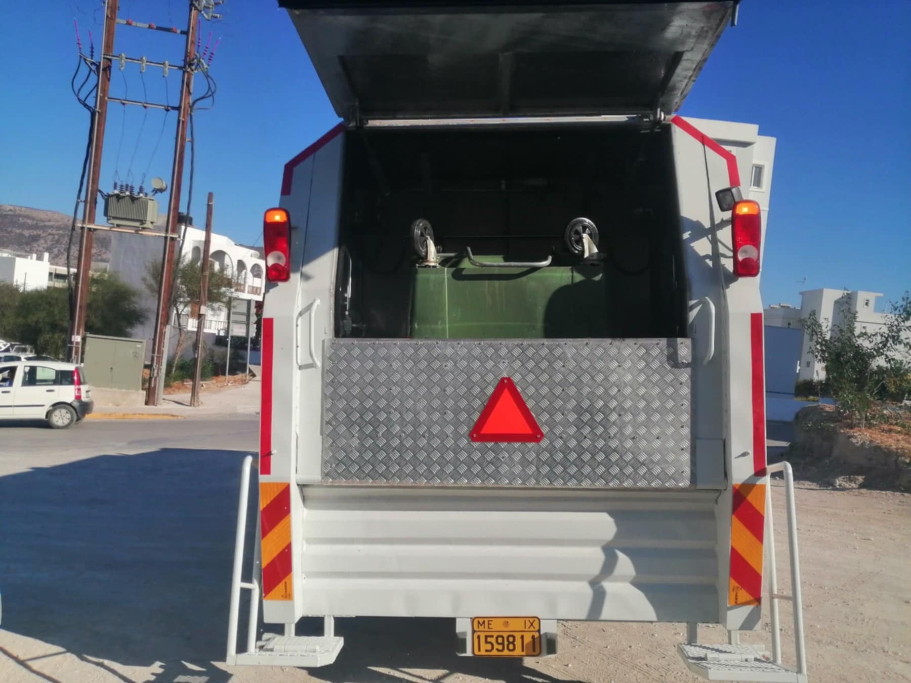 Πρόκειται για ένα όχημα ειδικού σκοπού, αφού με αυτό θα πλένονται και θα απολυμαίνονται οι κάδοι απορριμμάτων σε τακτά χρονικά διαστήματα, καθώς θα χρησιμοποιείται νερό με πίεση και ειδικό απορρυπαντικό υγρό.
