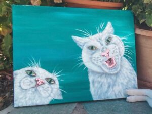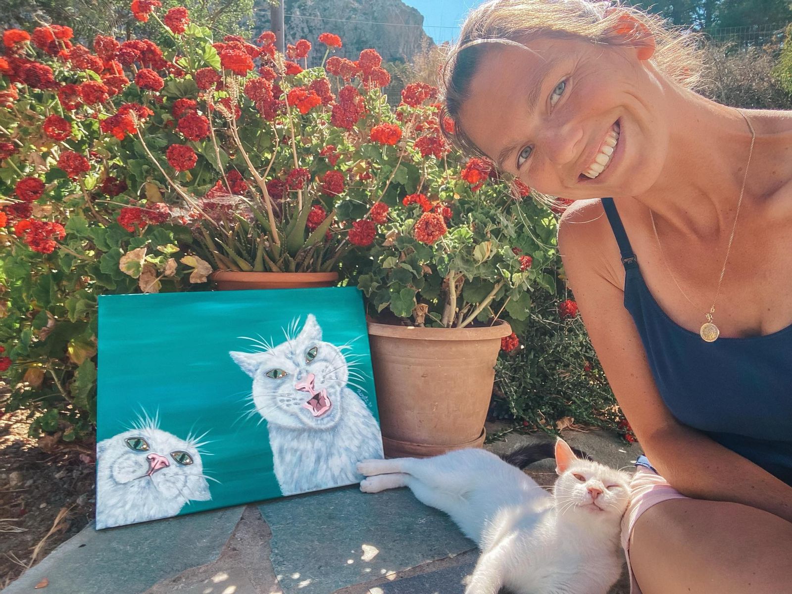 Η Renate Mattsson προσφέρει για τη λαχειοφόρο μας τον πίνακά της με τίτλο.”Curious cats”. Ακρυλικά χρώματα σε καμβά, διαστάσεις: 50 x 40 cm.