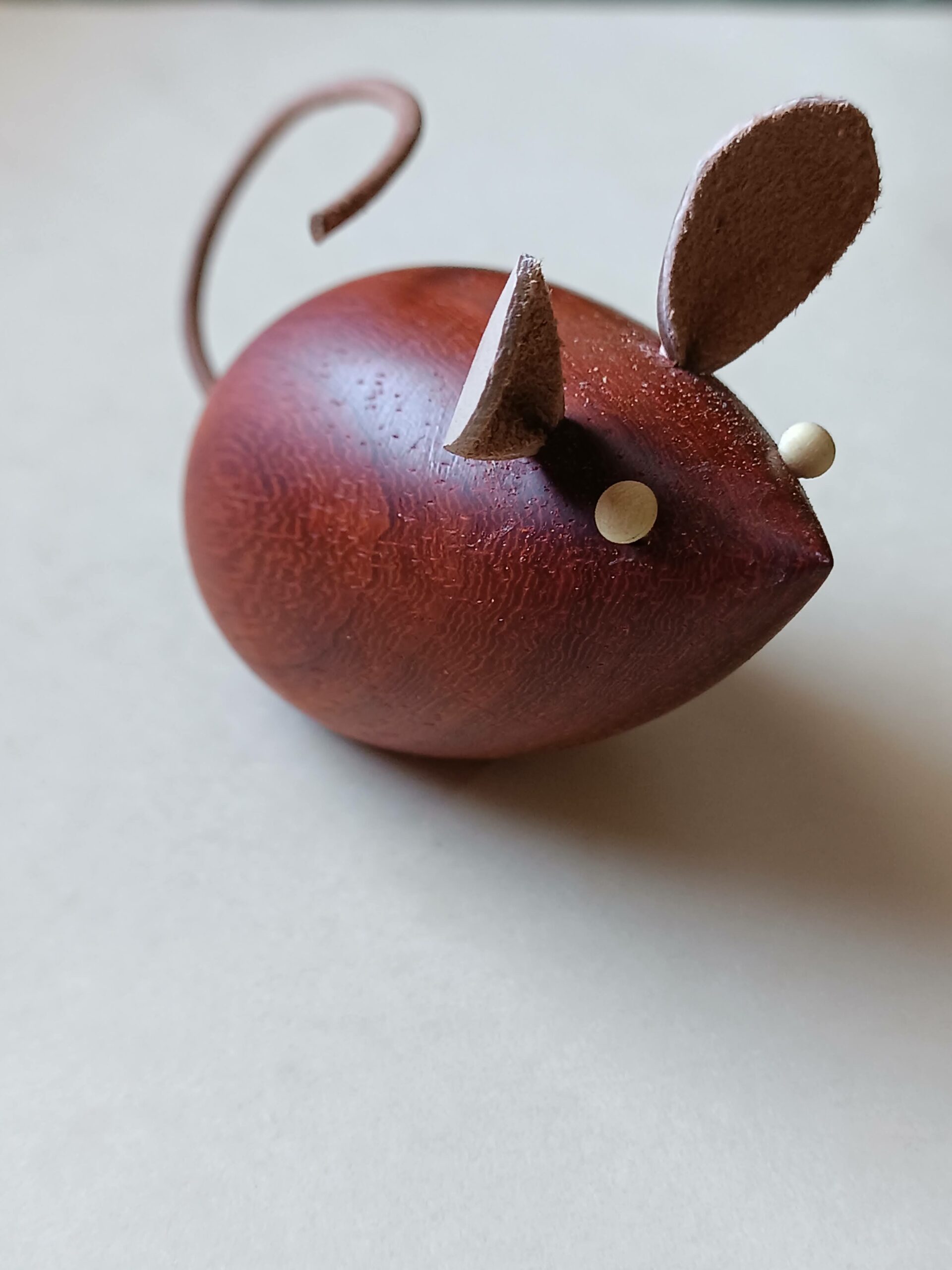 Ο Γιώργος Κωστέτσος προσφέρει για τη λαχειοφόρο της ΦΔΚ αυτό το γλυκύτατο ποντικάκι, φτιαγμένο στον τόρνο, από τροπικό ξύλο. Τα αυτάκια και η ουρά είναι από συνθετικό δέρμα.