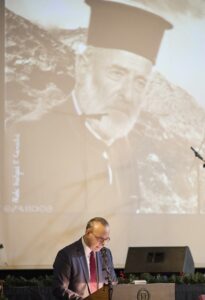 Σειρά στην συνέχεια πήρε ο Γενικός Γραμματέας της Ελληνικής Λαογραφικής Εταιρείας Κοσμήτορας της Σχολής Κλασικών και Ανθρωπιστικών Σπουδών του Δημοκριτείου Πανεπιστημίου Θράκης, Καθηγητής κ. Μανόλης Γ. Βαρβούνης, ο οποίος προχώρησε στην αναλυτική παρουσίαση του βιβλίου του παπα-Γιάννη «Η ζωή μου στην Όλυμπο Καρπάθου» που κυκλοφόρησε το 2022 από τον εκδοτικό οίκο 24 Γράμματα, φωτίζοντας σημαντικά σημεία του συγκράματος που αφορούν την στάση ζωής και την βαθιά φιλοσοφημένη κοσμοθεωρία του συγγραφέα.