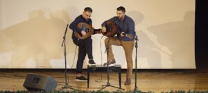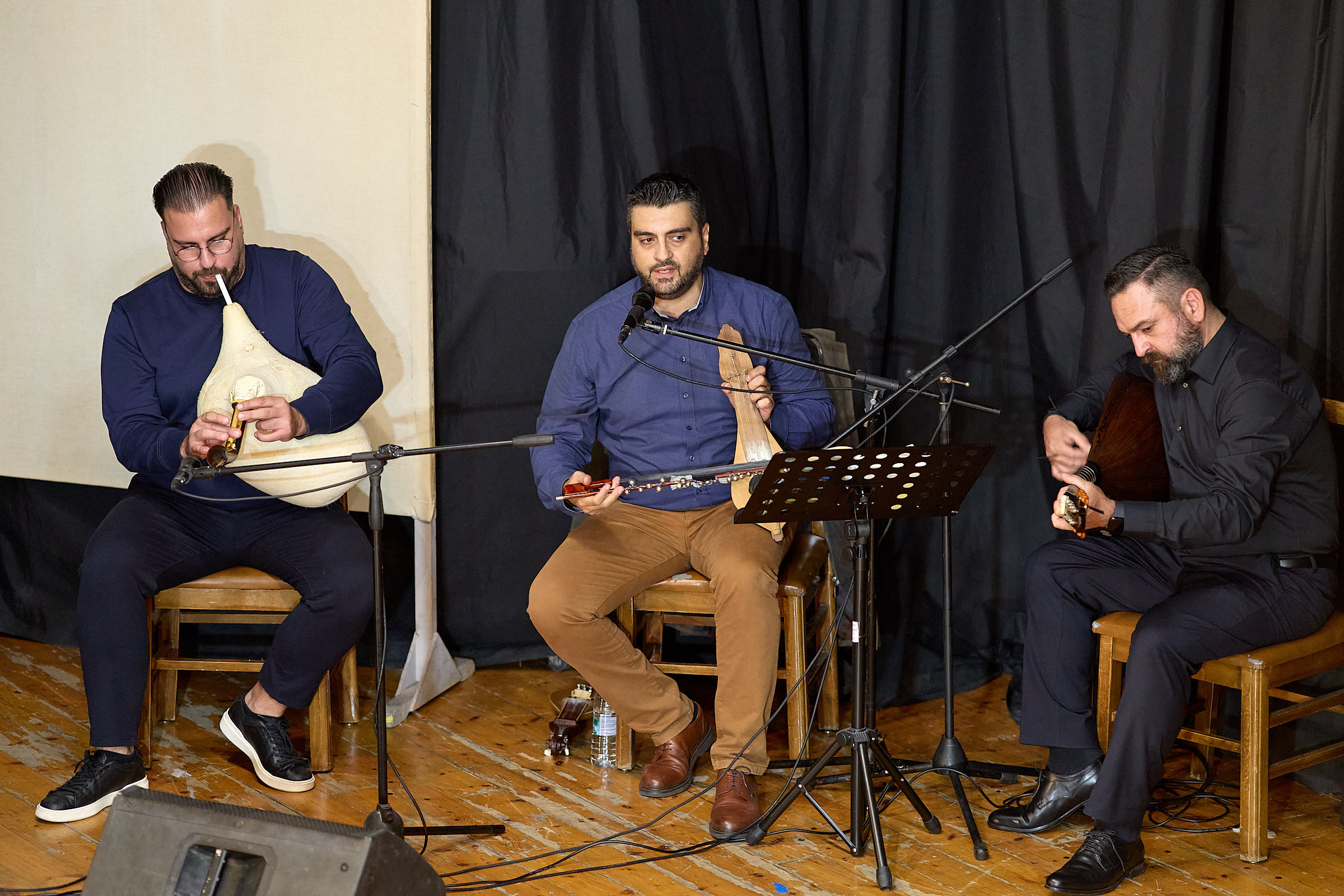 Η εκδήλωση μας ξεκίνησε μουσικά, με τους βιρτουόζους στο λαούτο Γιώργο Ν. Αναστασιάδη και Γιώργο Κ. Μιχαλή, να τραγουδούν μαντινάδες αφιερωμένες στον πατέρα Ιωάννη, αποδίδοντας τες στον Ολυμπίτικο σκοπό της οικογένειας του Διακογιώργη.