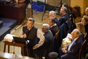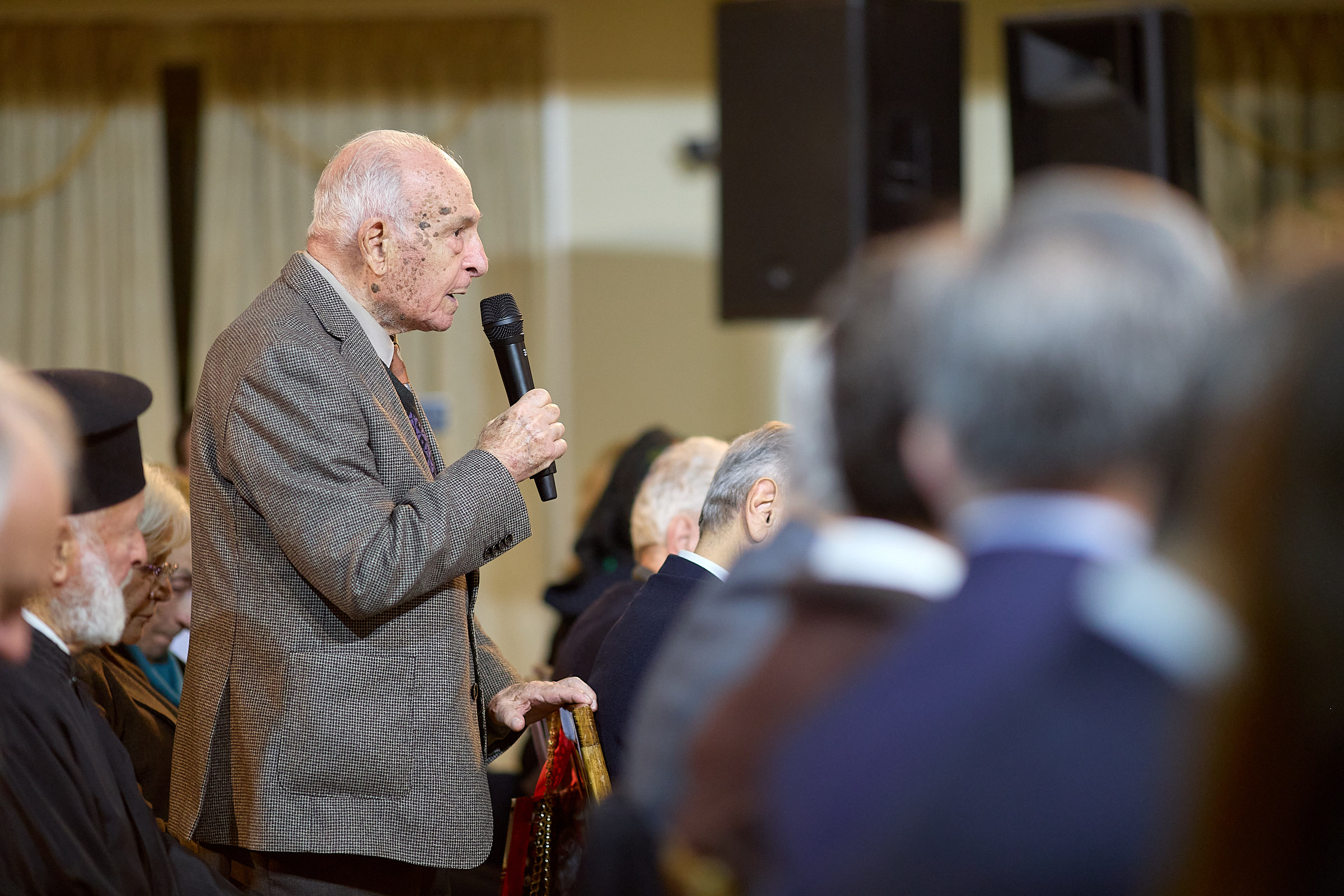Ακολούθησαν οι χαιρετισμοί του Προέδρου της Αδελφότητας μας κ. Γιώργου Ν. Διακογεωργίου και του Προέδρου της Ελληνικής Λαογραφικής Εταιρείας Καθηγητή Λαογραφίας στο Τμήμα Φιλολογίας της Φιλοσοφικής Σχολής του Πανεπιστημίου Αθηνών κ. Μηνά Αλ. Αλεξιάδη, που μίλησαν με λόγια καρδιάς για τον παπα-Γιάννη.