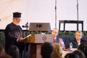 Χαιρετισμούς απεύθυναν οι παραβρισκόμενοι βουλευτές Δωδεκανήσου της Νέας Δημοκρατίας κύριοι Μάνος Κόνσολας και Βασίλης Υψηλάντης, ενώ με καλοταιριασμένες μαντινάδες χαιρέτισε τον ιερωμένο μας ο Διευθυντής του Τμήματος Γενικής, Λαπαροσκοπικής, Ογκολογικής και Ρομποτικής Χειρουργικής του Ιατρικού Κέντρου Αθηνών, συμπατριώτης μας Κος Ντίνος Κωνσταντινίδης.