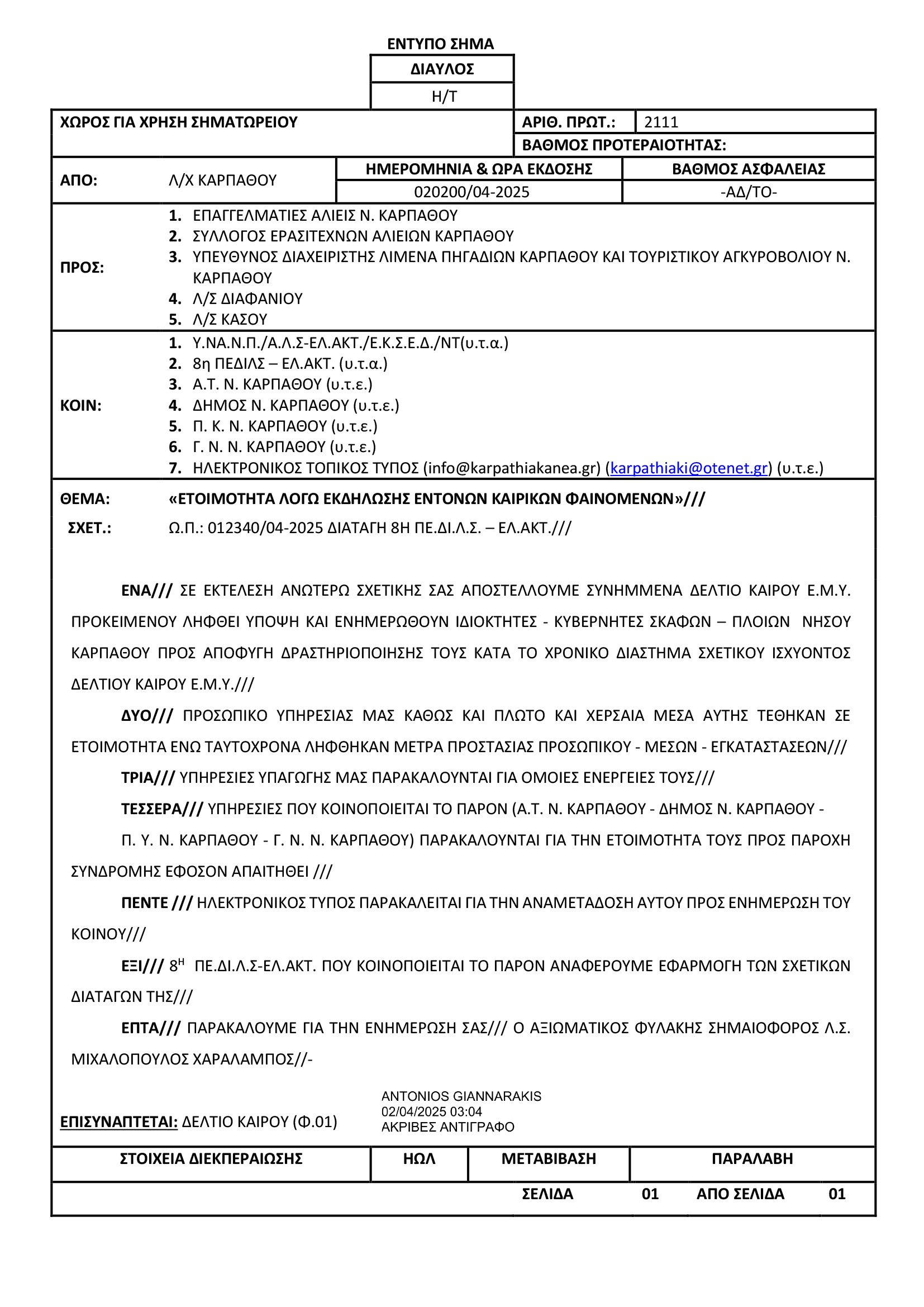 Απαγορεύεται η αναδημοσίευση,αντιγραφή ή αναπαραγωγή (ολική, μερική,περιληπτική κατά παράφραση) του περιεχομένου του karpathiaki.gr με οποιονδήποτε τρόπο χωρίς την προηγούμενη άδεια του διαχειριστή.
