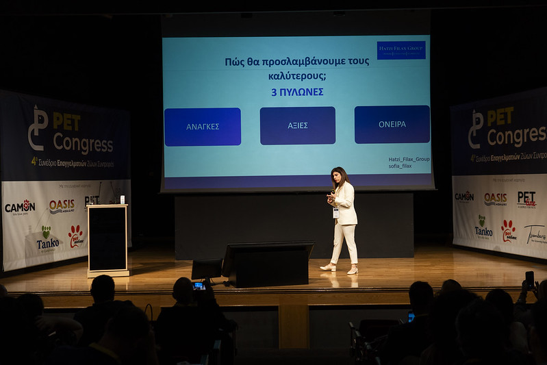 Με μεγάλη επιτυχία ολοκληρώθηκε το 4ο Συνέδριο Επαγγελματιών Ζώων Συντροφιάς – PET Congress, που πραγματοποιήθηκε στις 5 και 6 Απριλίου στο OTE Academy στο Μαρούσι με παρουσιαστή τον κο Θέμη Σαρανταένα, Σύμβουλο Μάρκετινγκ . Ανάμεσα στις ξεχωριστές ομιλίες που κέρδισαν το ενδιαφέρον του κοινού, ήταν και αυτή της Σοφίας Σκευοφύλακα, Co-Founder & CCO της Hatzi Filax Group, η οποία παρουσίασε την ομιλία: