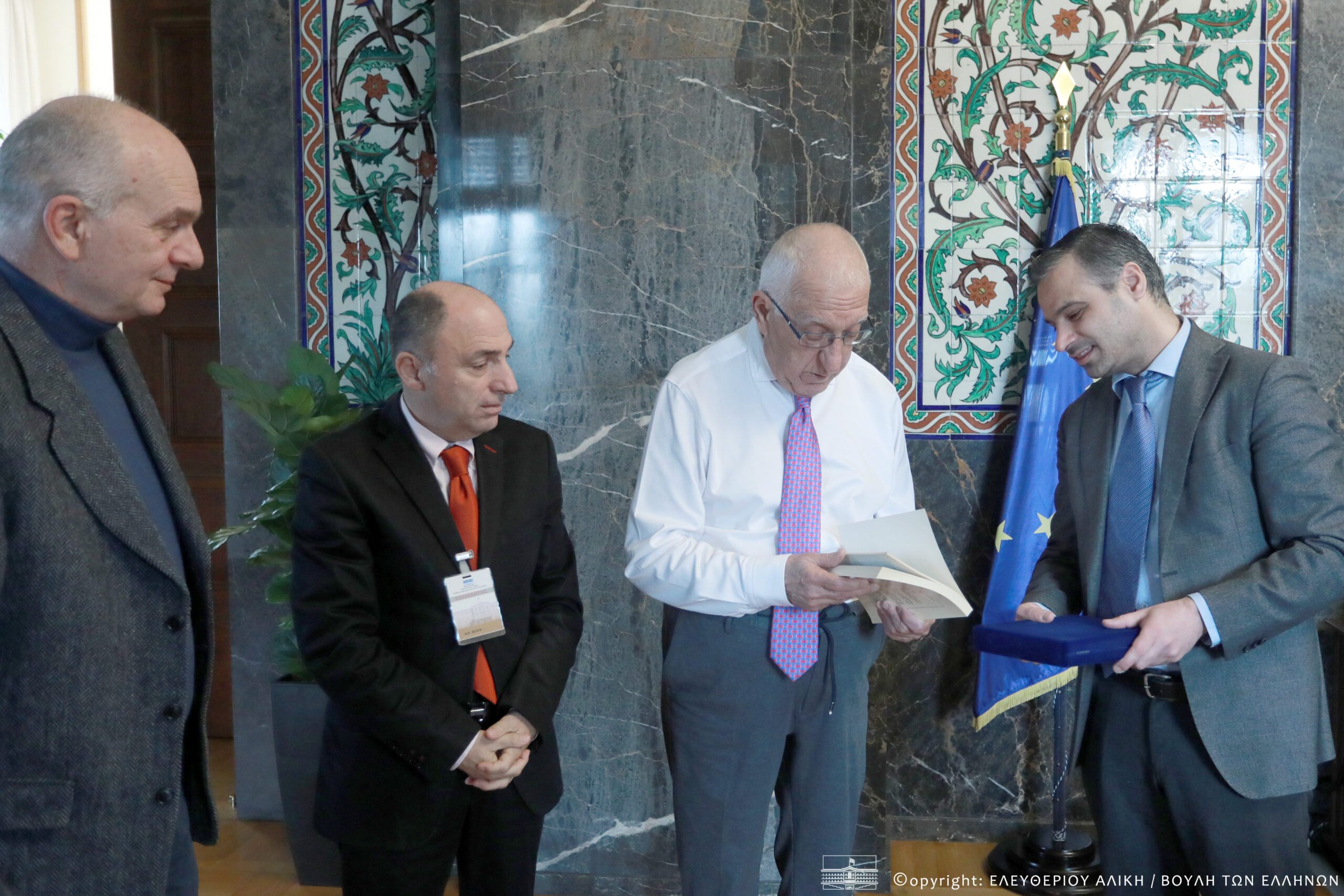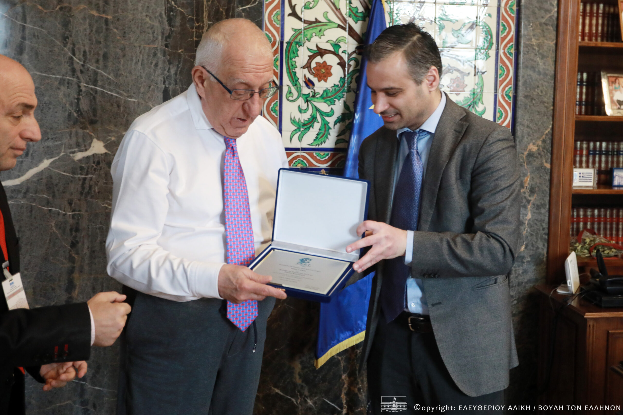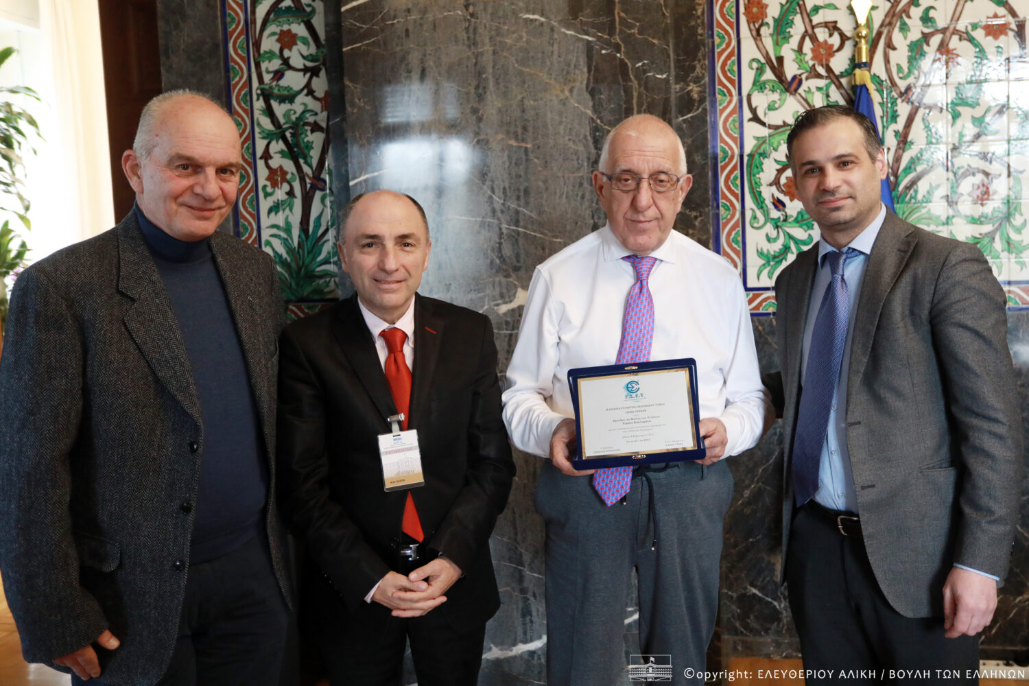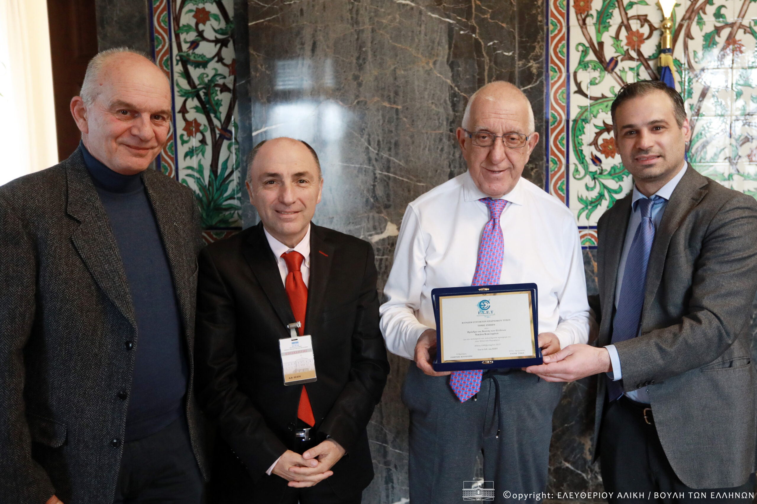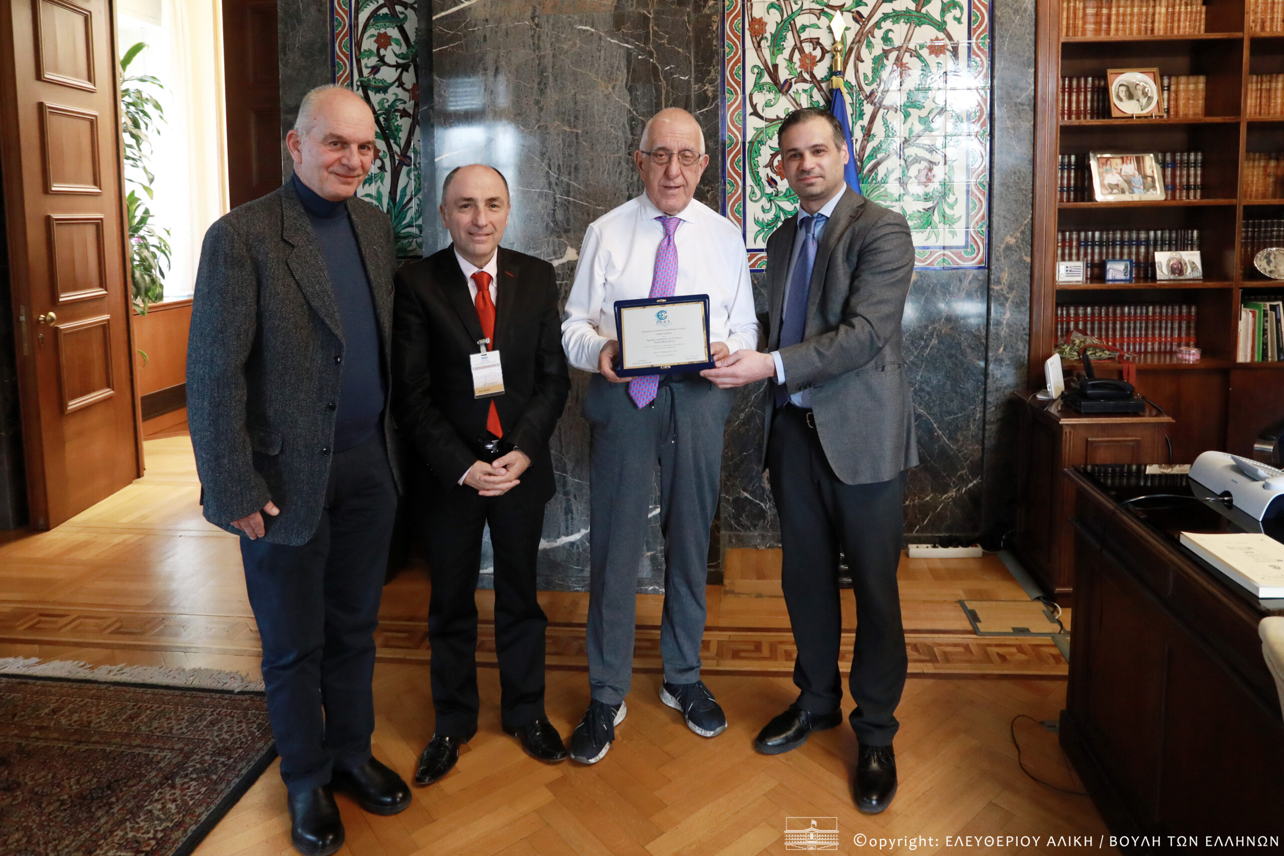 Στο πλαίσιο της συνάντησης ο Πρόεδρος της Ε.Σ.Ε.Τ. κ. Γιώργος Κουλουράς, απένειμε τιμητική πλακέτα στον Πρόεδρο της Βουλής των Ελλήνων κ. Νικήτα Κακλαμάνη για την πολυσήμαντη και πολύχρονη προσφορά του στην Ελληνική Περιφέρεια από όλες στις θέσεις που υπηρέτησε όλα αυτά τα χρόνια στην πολιτική του διαδρομή.
