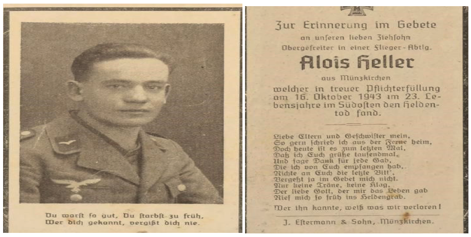 ΓΕΡΜΑΝΙΚΗ ΚΑΡΤΑ ΘΑΝΑΤΟΥ ΤΟΥ Β’ ΠΑΓΚΟΣΜΙΟΥ ΠΟΛΕΜΟΥ: Alois Heller – Δεκανέας σε Αερομεταφερόμενη Μεραρχία.