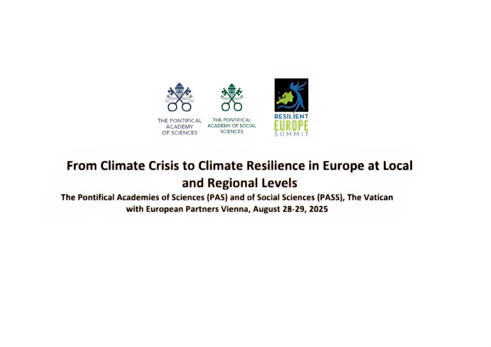 Το Vatican Pan-European Climate Resilience Summit συγκεντρώνει κορυφαίους επιστήμονες, δημάρχους και πολιτικούς ηγέτες από όλη την Ευρώπη, υπό τον συντονισμό του European Academies Science Advisory Council και της Αυστριακής Ακαδημίας Επιστημών. Μεταξύ των συμμετεχόντων είναι η πρώην Πρωθυπουργός της Ισλανδίας Katrín Jakobsdóttir, ο Δήμαρχος Βιέννης Michael Ludwig, η Δήμαρχος Κολωνίας Henriette Reker, ο Δήμαρχος Μπράγκα Ricardo Rio και η Elina Bardram από την Ευρωπαϊκή Επιτροπή.