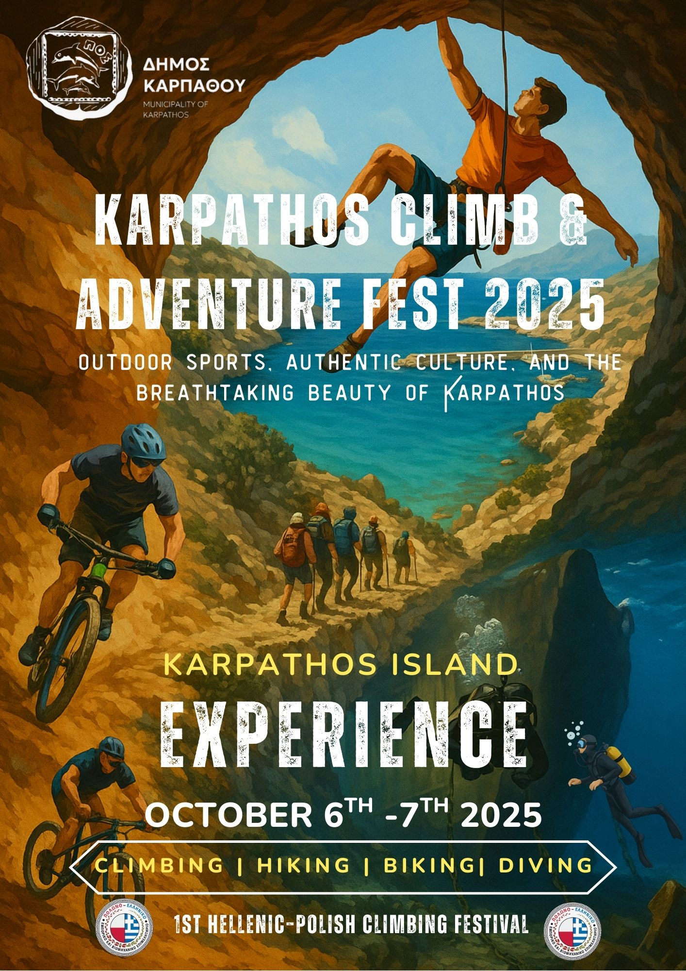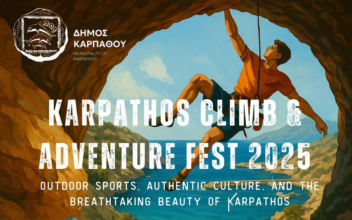 Ο Δήμος Καρπάθου ανακοινώνει τη διοργάνωση του Karpathos Climb & Adventure Fest 2025, που θα πραγματοποιηθεί στις 6 και 7 Οκτωβρίου.