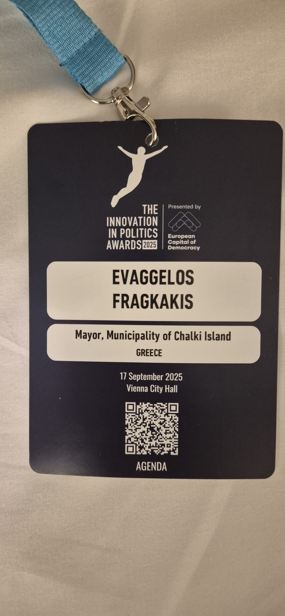 Η βράβευση πραγματοποιήθηκε στη Βιέννη στην Αυστρία, στο πλαίσιο του ετήσιου Innovation in Politics Gala, όπου παρουσιάστηκαν οι πιο καινοτόμες πολιτικές πρωτοβουλίες από όλη την ήπειρο. Η διάκριση αυτή δεν αποτελεί μόνο διεθνή αναγνώριση για το έργο «Greece’s First Eco Island», αλλά και έναν μεγάλο σταθμό για την Ελλάδα και τον νησιωτικό κόσμο.