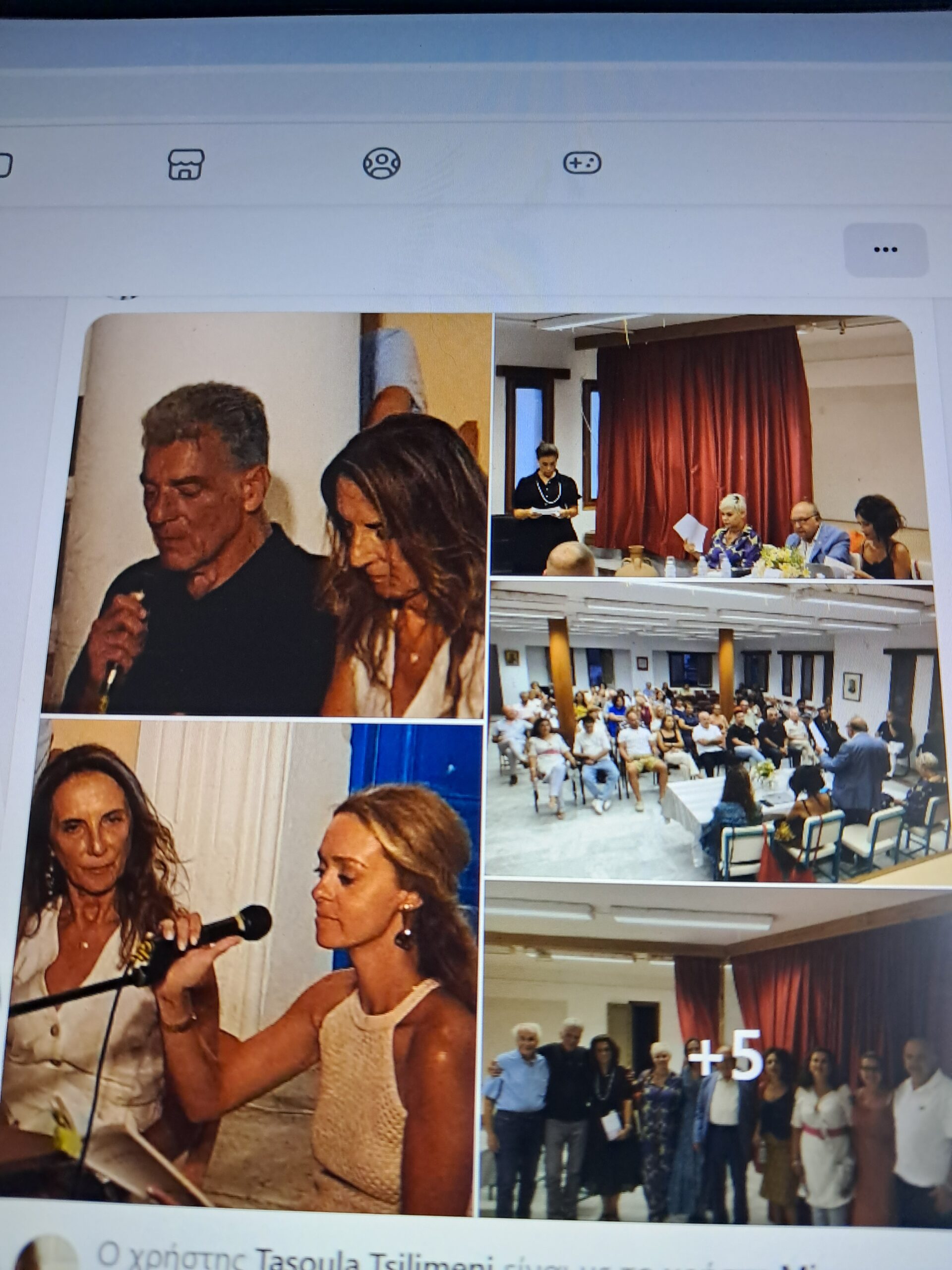 Οι φωτογραφίες είναι πρόσφατες. Η μία είναι από την παρουσίαση του Βιβλίου της Τασούλας Τσιλιμένη καθηγήτρια στο πανεπιστήμιο Θεσσαλίας και Διευθύντρια λόγου και Πολιτισμού στο ΠΘ. Τίτλος του βιβλίου της «Το πάρκο της μνήμης». Η παρουσία του έγινε 22 Αυγούστου 2025 στο Πολυχρονιάδειο Μέγαρο.