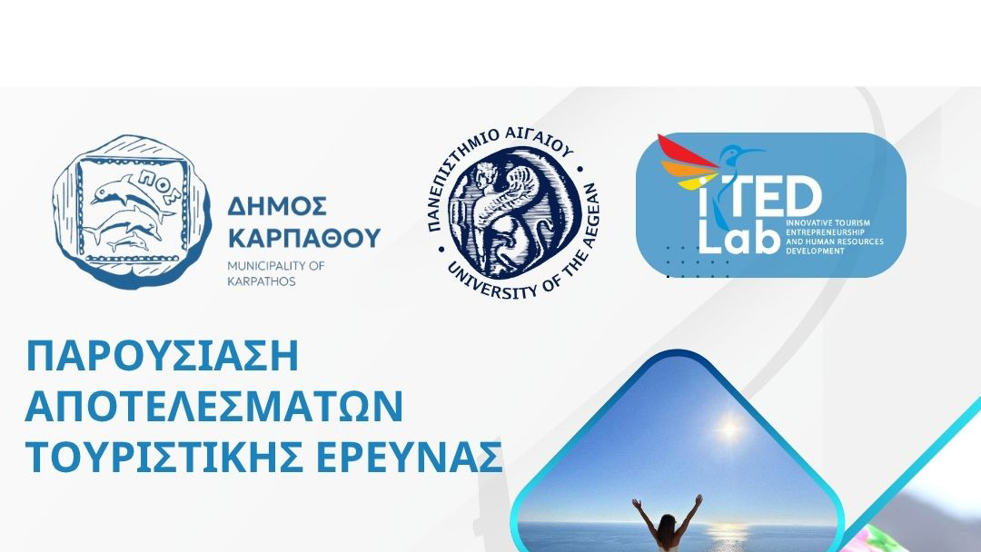 Ο Δήμος Καρπάθου και το iTED Lab του Τμήματος Οικονομικής και Διοίκησης Τουρισμού του Πανεπιστημίου Αιγαίου, σας προσκαλούν στην παρουσίαση των αποτελεσμάτων της έρευνας για την τουριστική ανάπτυξη του νησιού μας.