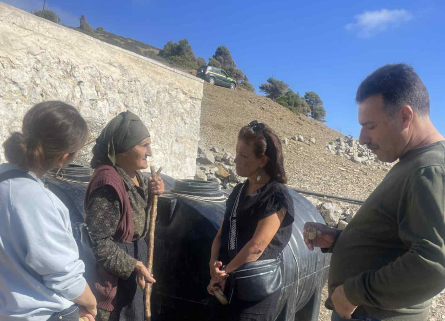 Κατά τη διάρκεια της επίσκεψης, τη ρωτήσαμε τι θα μπορούσαμε να κάνουμε για να τη στηρίξουμε, και ύστερα από δικό της αίτημα, η Έπαρχος ήρθε σε συνεννόηση με την Πυροσβεστική Υπηρεσία Καρπάθου, ώστε να γεμίσουν τα βυτία της και να εξασφαλιστεί η απαραίτητη ποσότητα νερού για την διαβίωση της.