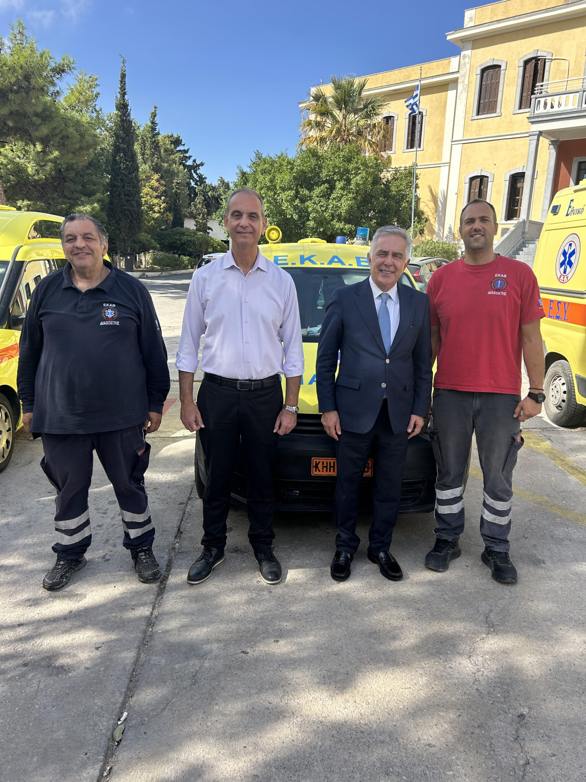 Στο πλαίσιο της επίσκεψής του, ο Βουλευτής επισκέφθηκε το Βουβάλειο Νοσοκομείο Καλύμνου, όπου συναντήθηκε με τον Διοικητή κ. Παντελή Κόγγα και στελέχη του νοσηλευτικού προσωπικού, καθώς και με τους εργαζομένους του ΕΚΑΒ. Κατά τη διάρκεια της επίσκεψης, ενημερώθηκε για την πορεία των έργων που αφορούν τη μεταστέγαση του ΕΚΑΒ και εξέφρασε το ενδιαφέρον του για την επιτάχυνση τους. Παράλληλα, δεσμεύτηκε να προωθήσει τα ζητήματα που αφορούν την ενίσχυση του προσωπικού, τόσο του Νοσοκομείου όσο και του ΕΚΑΒ, προκειμένου να εξασφαλιστεί η απρόσκοπτη παροχή υπηρεσιών υγείας στους κατοίκους του νησιού.