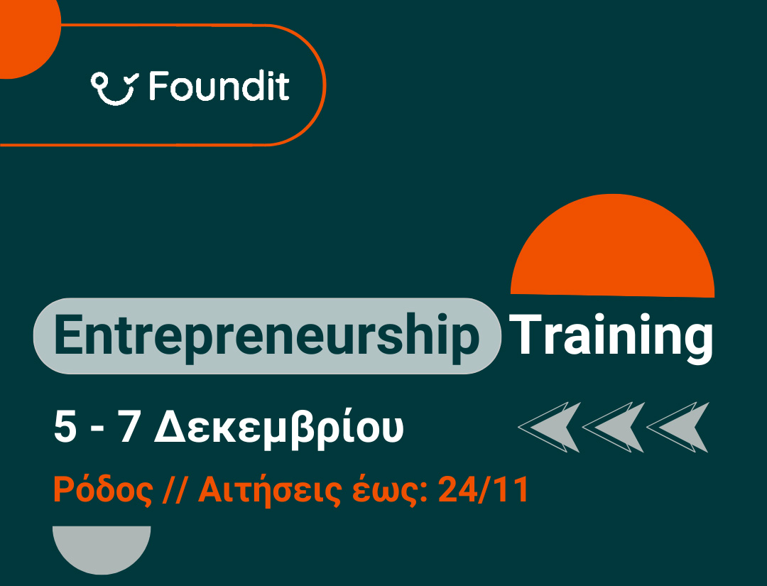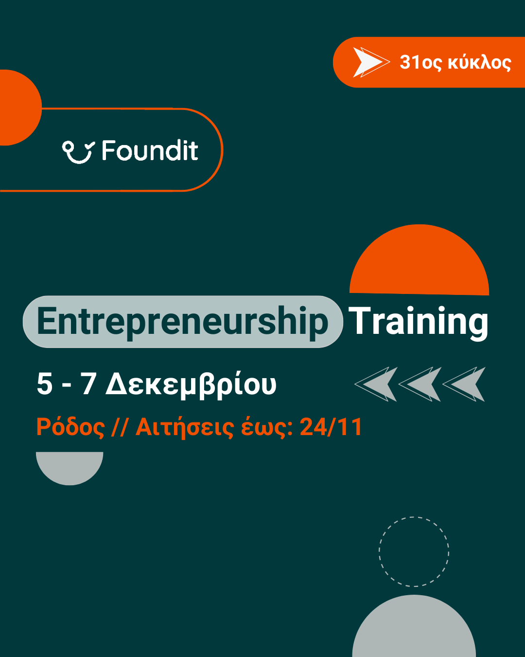 Έχεις μία επιχειρηματική ιδέα που θέλεις να εξελίξεις σε πραγματική επιχείρηση ή έχεις μόλις ξεκινήσει την επιχείρηση σου και χρειάζεσαι βοήθεια; Δήλωσε συμμετοχή στο Foundit #31 στην Ρόδο, εδώ: https://bit.ly/foundit31.