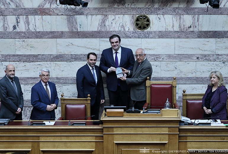 Τον Προϋπολογισμό του Κράτους για το οικονομικό έτος 2026, με την εισηγητική του Έκθεση, παρέδωσε σήμερα σε ψηφιακή μορφή, κατά τη διάρκεια της συνεδρίασης της Ολομέλειας της Βουλής, ο Υπουργός Εθνικής Οικονομίας και Οικονομικών, κ. Κυριάκος Πιερρακάκης, στον Πρόεδρο της Βουλής των Ελλήνων, κ. Νικήτα Κακλαμάνη.