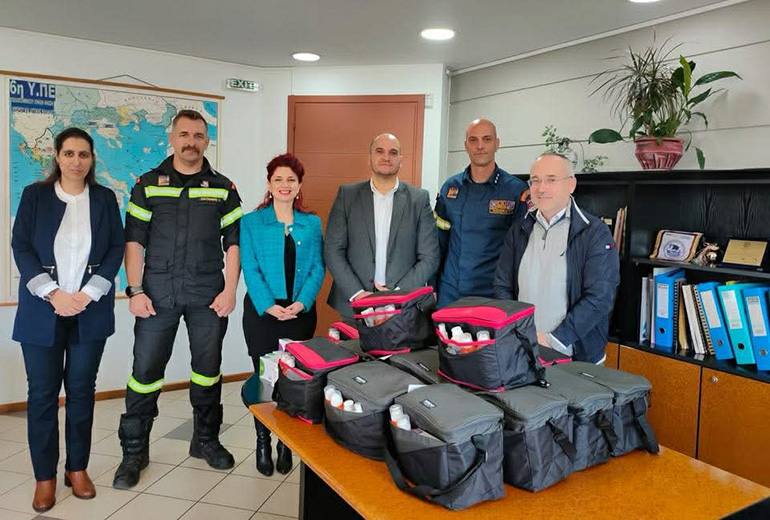 Στο πλαίσιο συνεργασίας για την ενίσχυση της επιχειρησιακής ετοιμότητας και της ασφάλειας, ο Διοικητής της 6ης Υγειονομικής Περιφέρειας, Ηλίας Θεοδωρόπουλος, παρέδωσε σήμερα στην Ειδική Μονάδα Δασικών Επιχειρήσεων εξειδικευμένα τσαντάκια με φαρμακευτικό και αναλώσιμο υλικό , τα οποία θα συνοδεύουν τα στελέχη της σε κάθε επιχείρηση.