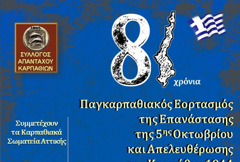 Σας περιμένουμε την Κυριακή 30 Νοεμβρίου 2025 στον Παγκαρπαθιακό Εορτασμό της 81ης Επετείου της Επανάστασης της 5ης Οκτωβρίου και Απελευθέρωσης της Καρπάθου 1944 στο κέντρο της Αθήνας!