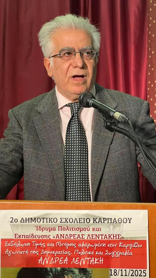 Ξεχωριστή απήχηση είχε η εκδήλωση τιμής και μνήμης για τον Καρπάθιο αγωνιστή της Δημοκρατίας, πολιτικό και συγγραφέα Ανδρέα Λεντάκη, που πραγματοποιήθηκε την Τρίτη 18 Νοεμβρίου 2025 από το 2ο Δημοτικό Σχολείο Καρπάθου σε συνεργασία με το Ίδρυμα Πολιτισμού και Εκπαίδευσης «Ανδρέας Λεντάκης», υπό την αιγίδα του Δήμου Καρπάθου.