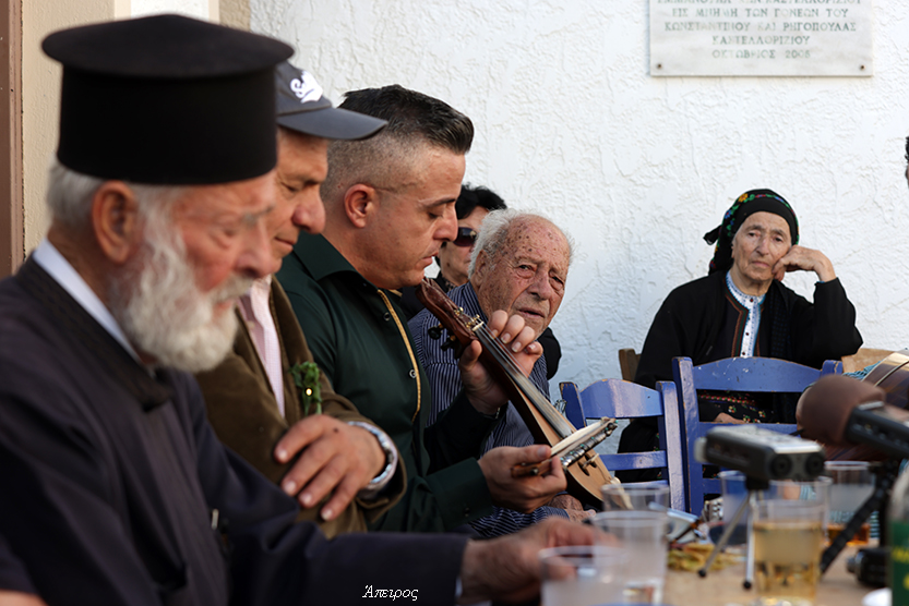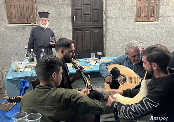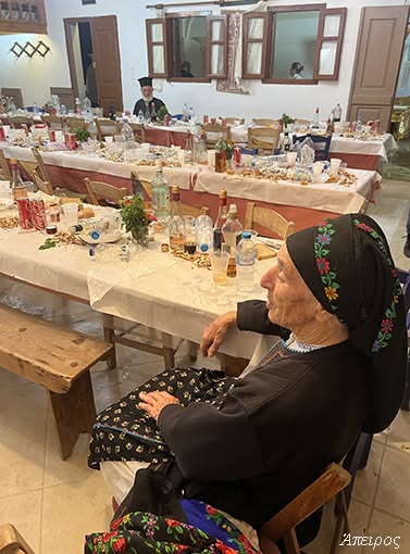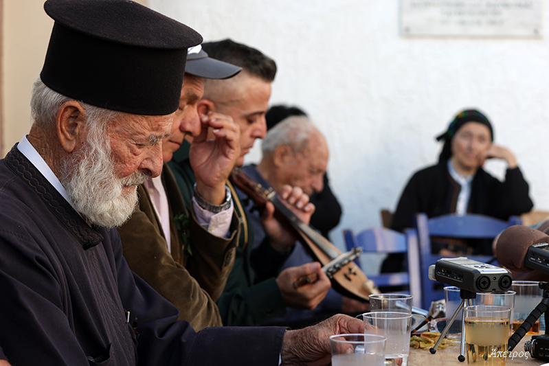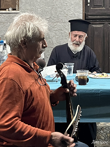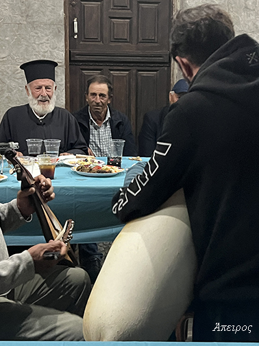 Πρώτη φορά τον είδα να χοροστατεί στο Τρίστομο – πρώτη φορά χωρίς τον π. Μηνά… Καιρό είχα να τον δω να κάθεται ως τόσο αργά στο γλέντι. Και στον Άη Μηνά, την παραμονή, εκείνος σηκώθηκε πρώτος στο χορό. Και ανήμερα, ακόμη κι όταν έξω ξεκινούσαν τα όργανα, εκείνος συνέχιζε να τραγουδά μέσα.