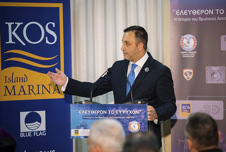 Σε ιδιαίτερα κλίμα συγκίνησης στην κατάμεστη αίθουσα εκδηλώσεων της Μαρίνας Κω, πραγματοποιήθηκε η παρουσίαση της ιστορικής διαδρομής του αντιτορπιλικού «ΑΔΡΙΑΣ», που διοργάνωσε το τμήμα ΑΧΕΠΑ Κω σε συνεργασία με το ΝΑ.Σ.ΚΩ, την Πολιτιστική Ομάδα «Αρχιπέλαγος», την Μαρίνα Κω και το Σπίτι της Ευρώπης, στο πλαίσιο των εκδηλώσεων μνήμης του πολιούχου και προστάτη του Πολεμικού Ναυτικού, Αγίου Νικολάου.