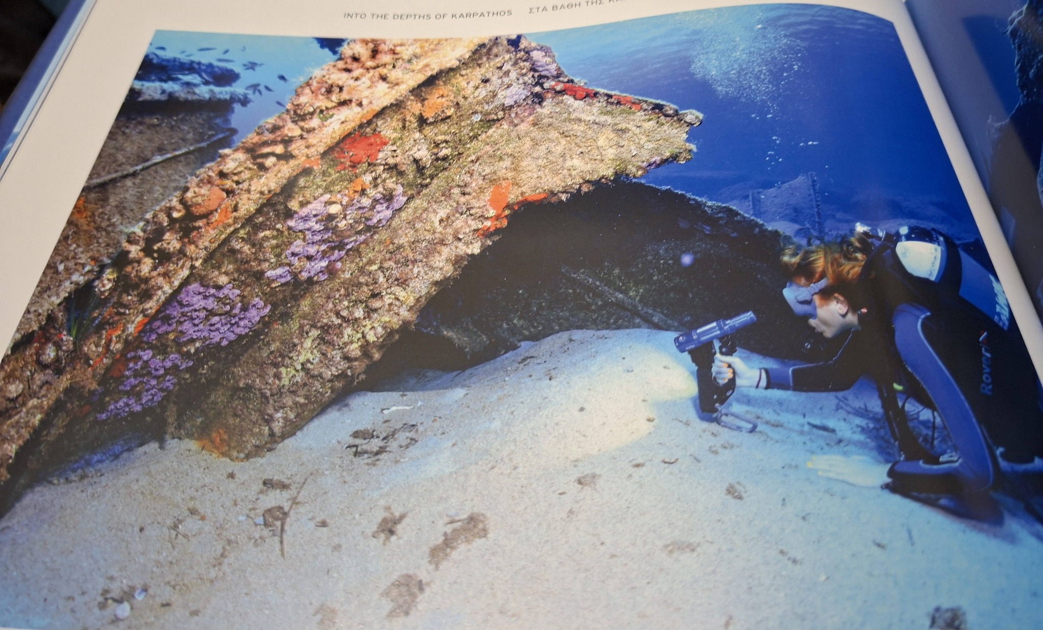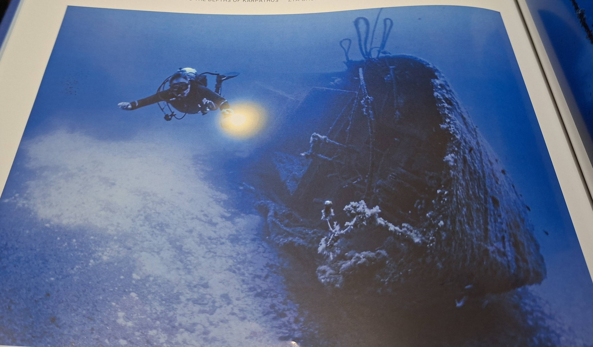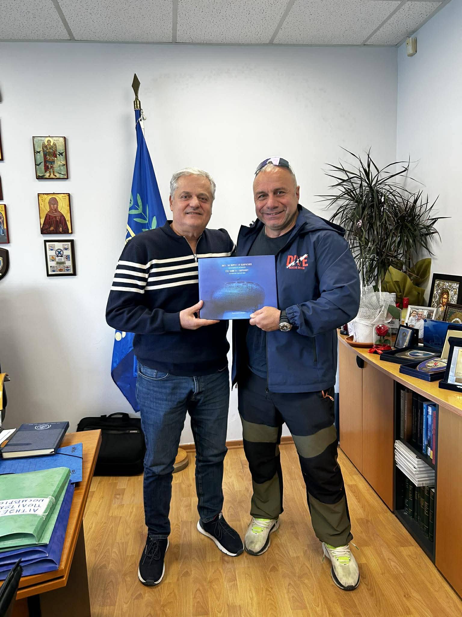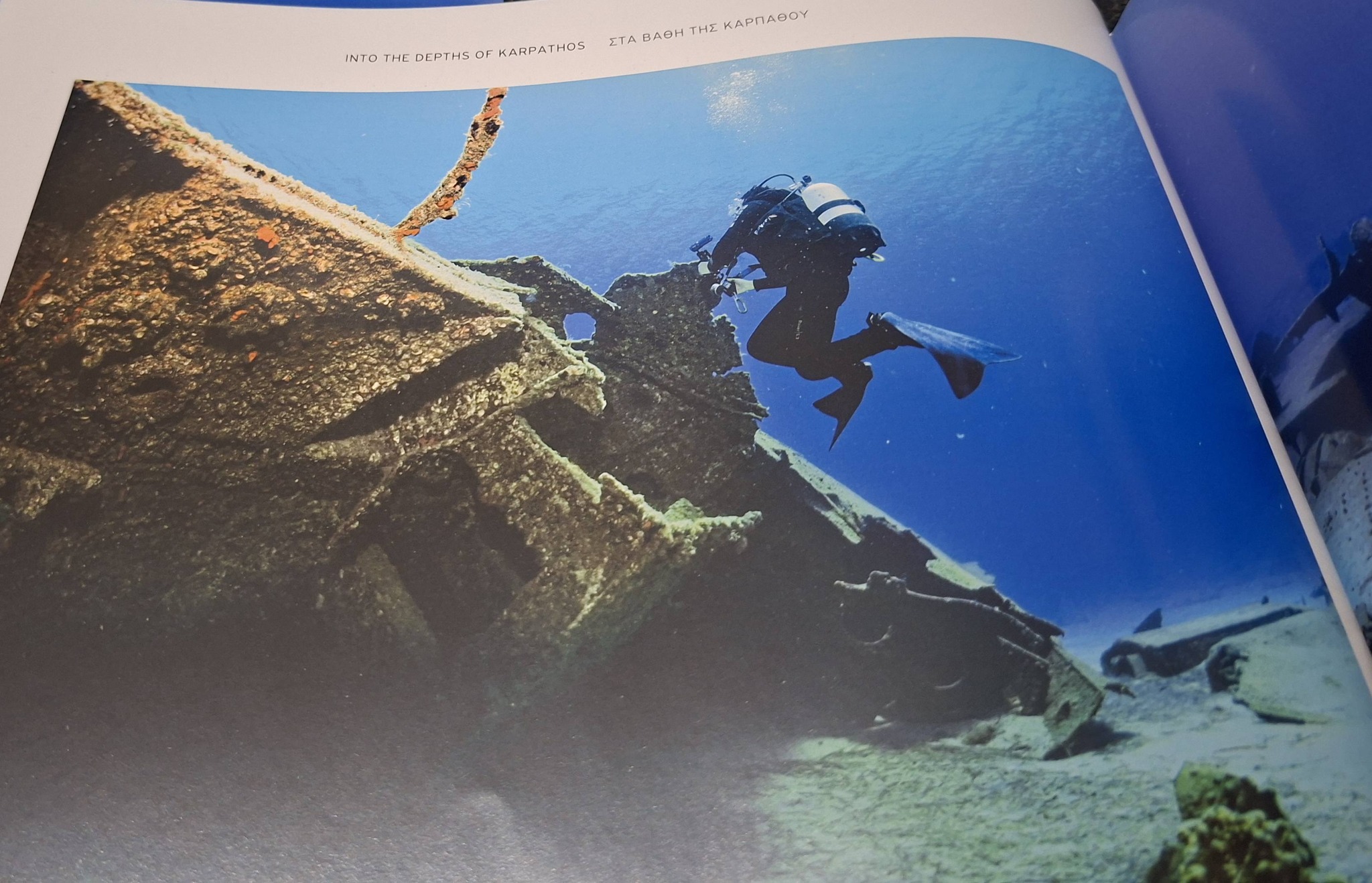 Μετά από χρόνια επίπονων προσπαθειών πλέον κρατάμε στα χέρια μας ένα άλμπουμ πολυτελείας ικανό να εκπροσωπήσει και να ανάδειξε επάξια το απέραντο γαλάζιο της Καρπάθου. Ένα άλμπουμ που μπορεί ο δήμος μας να το χαρίσει στους υψηλούς πρόσκεκλημενους του ως κόσμημα και πολύτιμο δώρο στην βιβλιοθήκη τους. Ίσως η κορυφαία διαφήμιση για το νησί μας. Δεν πρόκειται για κάτι πρόχειρο είναι προϊόν του κορυφαίου ερευνητή ναυαγίων όχι μόνο στην πατρίδα μας αλλά σε παγκόσμια κλίμακα. Σε αυτό το άλμπουμ θα δείτε φωτογραφίες απίστευτης ομορφιάς απο τα ναυάγια στον βυθό της Καρπάθου και θα μάθετε λεπτομερώς την ιστορία των ναυαγίων.