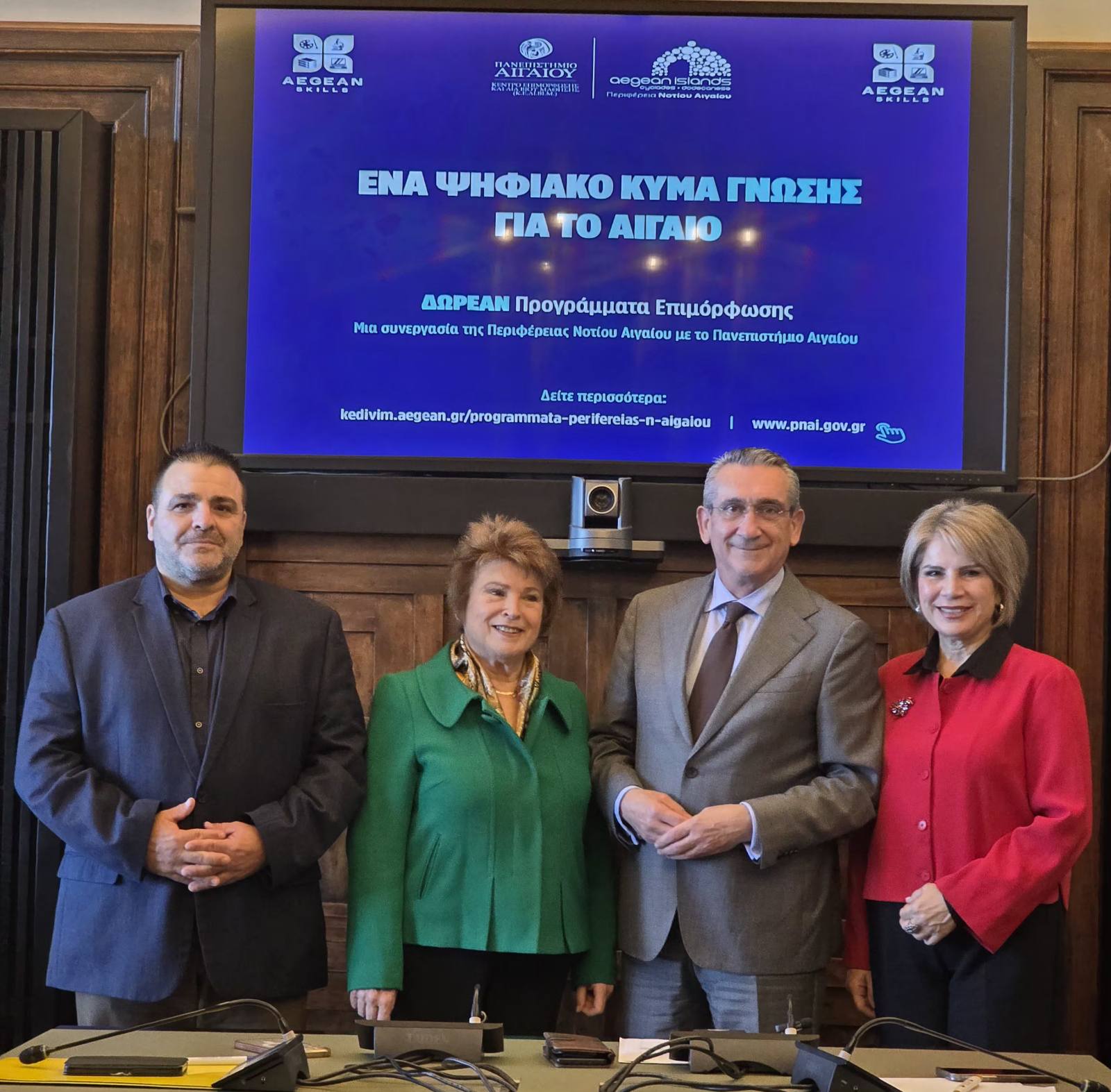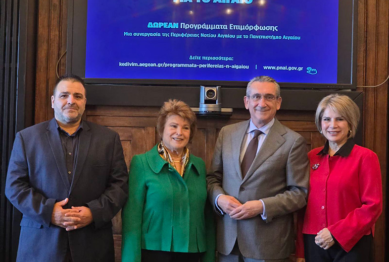 Τα παραπάνω ανακοίνωσαν στη συνέντευξη Τύπου που παραχώρησαν από κοινού ο Περιφερειάρχης Νοτίου Αιγαίου, κ. Γ. Χατζημάρκος, η Επιστημονικά Υπεύθυνη του Κέντρου Επιμόρφωσης και Δια Βίου Μάθησης (ΚΕΔΙΒΙΜ) του Πανεπιστημίου Αιγαίου, κ. Χρ. Βιτσιλάκη καθώς και τα στελέχη της Περιφέρειας Νοτίου Αιγαίου, κ. Σάββας Λουλούς και κ. Δέσποινα Χατζηδιάκου, μέλη της ομάδας εργασίας του προγράμματος και μέχρι πρότινος Αντιπρόεδρος του ΚΕΚ Γεννηματάς και Διευθύνουσα Σύμβουλος, αντίστοιχα.
