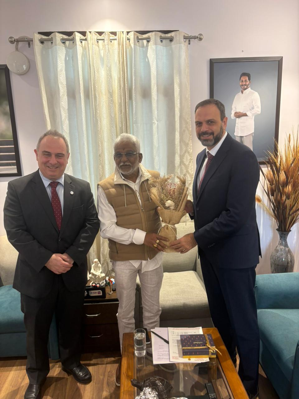 Η πρωτοβουλία περιλάμβανε επίσης συνάντηση με τον Ινδό πολιτικό και μέλος της Άνω Βουλής της Ινδίας, Yerram Venkata Subba Reddy, κατά την οποία ο κ. Χρήστος Μιχαλάκης πρότεινε την ανάπτυξη ανταλλαγών πολιτιστικών δράσεων, με στόχο τη δημιουργία ουσιαστικών γεφυρών όχι μόνο μεταξύ αγορών αλλά και μεταξύ πολιτισμών.