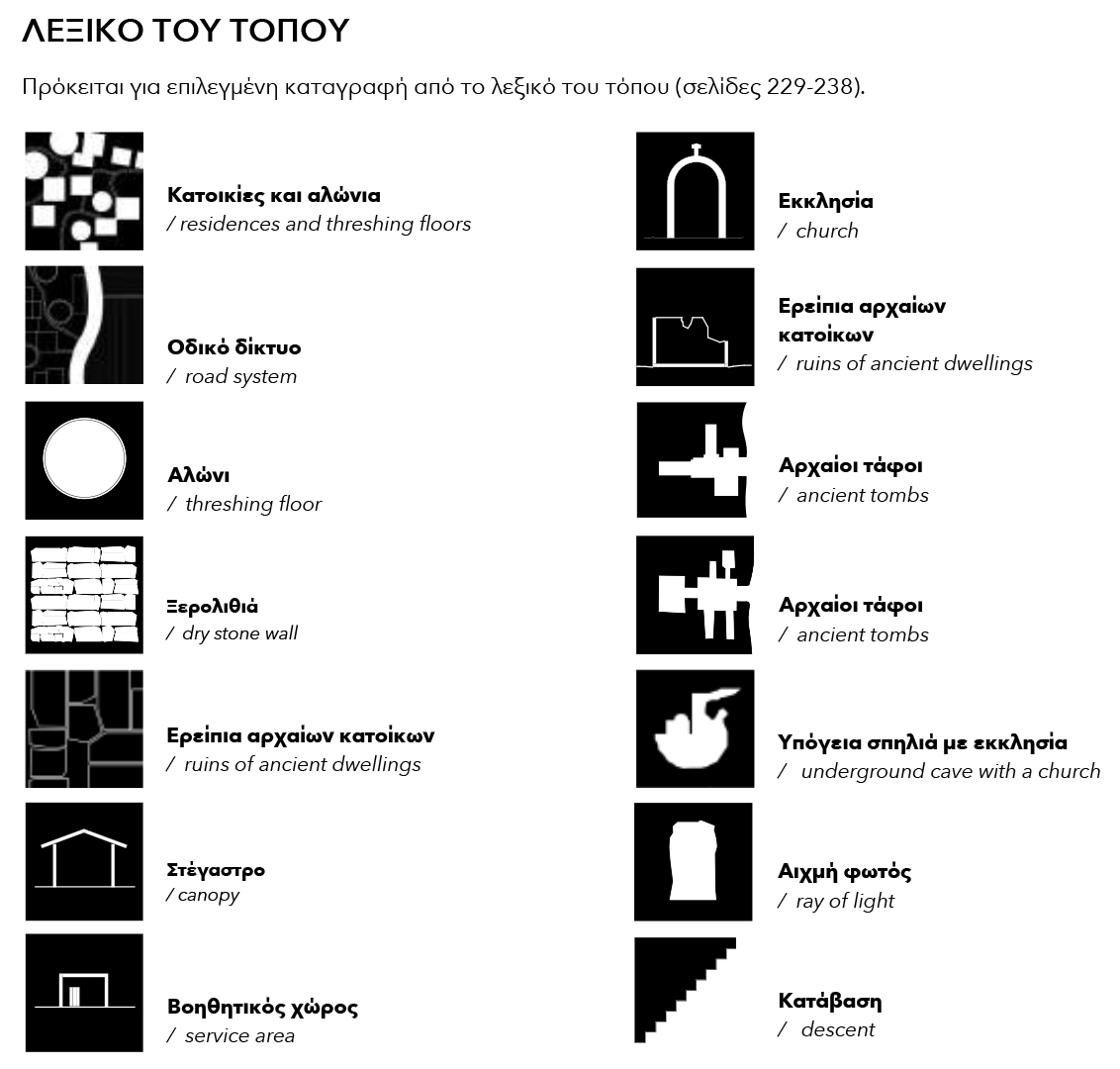 Κεντρικό στοιχείο της πρότασης αποτελεί η συστηματική παρατήρηση και ανάλυση του τόπου. Από αυτή τη διαδικασία προέκυψε ένα «λεξικό του τόπου», ένα σύνολο εννοιών, μορφών, υλικών και χωρικών χαρακτηριστικών που λειτουργεί ως μεθοδολογικό εργαλείο στη συνθετική διαδικασία.