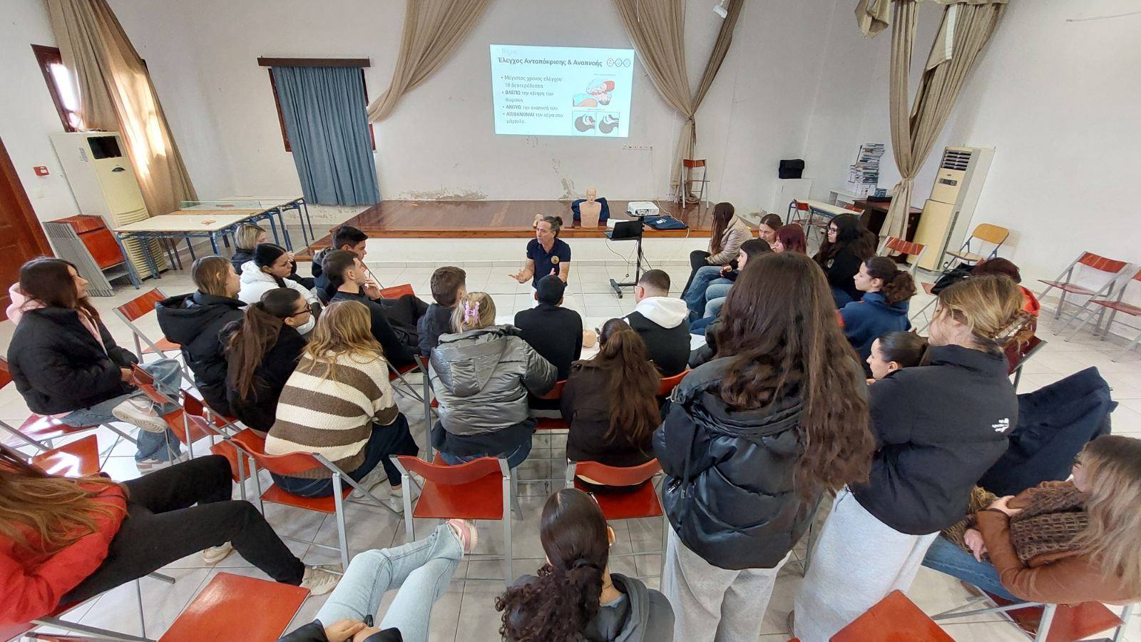 Η έγκαιρη αναγνώριση ενός θύματος που δεν αντιδρά και η άμεση εφαρμογή των σωστών χειρισμών αποτελούν τη βάση για τη διάσωση μιας ζωής. Με την καθοδήγηση του κ. Μερκούριου Κυπραίου, οι μαθητές και οι καθηγητές μας εκπαιδεύτηκαν στην αξιολόγηση της αναπνοής, στην τοποθέτηση του αναίσθητου θύματος σε θέση ανάνηψης, καθώς και στην τεχνική της ΚΑΡΠΑ για περιπτώσεις καρδιακής ανακοπής.