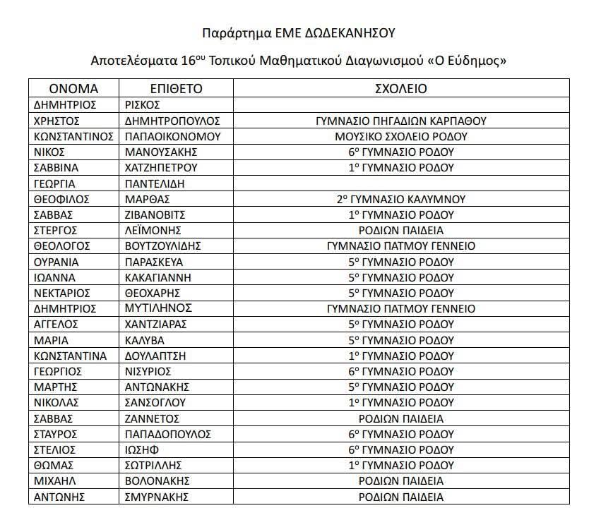 Η τελετή περιελάμβανε την απονομή επαίνων στους μαθητές και τις μαθήτριες της Δωδεκανήσου που διακρίθηκαν στους φετινούς μαθηματικούς διαγωνισμούς της Ελληνικής Μαθηματικής Εταιρείας.