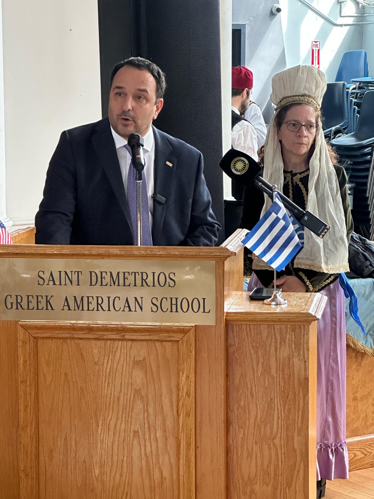 Κεντρική ομιλήτρια της εκδήλωσης ήταν η Γενική Πρόξενος της Ελλάδας στη Νέα Υόρκη, κ. Ιφιγένεια Καναρά, η παρουσία της οποίας προσέδωσε στην ημέρα το κύρος και την τιμή που της αρμόζουν, καθώς η ελληνική πολιτεία εκπροσωπήθηκε σε ανώτατο διπλωματικό επίπεδο εδώ στη Νέα Υόρκη. Η κ. Καναρά υπογράμμισε ότι «δεν γιορτάζουμε απλώς μια ιστορική ημερομηνία, αλλά μια στιγμή ιστορικής δικαίωσης για τους προγόνους σας, τους προγόνους μας και για όλους μας. Η 7η Μαρτίου 1948 αποτελεί μία από τις πιο συγκινητικές στιγμές στην ιστορία του Ελληνισμού, την ημέρα της Ενσωμάτωσης με την Ελλάδα, το αποκορύφωμα πολυετών αγώνων για ελευθερία και αυτοδιάθεση». Στη συνέχεια ανέδειξε τον καθοριστικό ρόλο της Ομογένειας —ιδιαίτερα της Δωδεκανησιακής παροικίας της Νέας Υόρκης και των Ηνωμένων Πολιτειών— στην πορεία προς την απελευθέρωση της Δωδεκανήσου, ενώ έκανε εκτενείς αναφορές στην ετοιμότητα της ελληνικής πολιτείας και των Ενόπλων Δυνάμεων να υπερασπιστούν την πατρίδα και τον οικουμενικό Ελληνισμό, σε μια περίοδο γεωπολιτικών προκλήσεων στην ευρύτερη περιοχή.