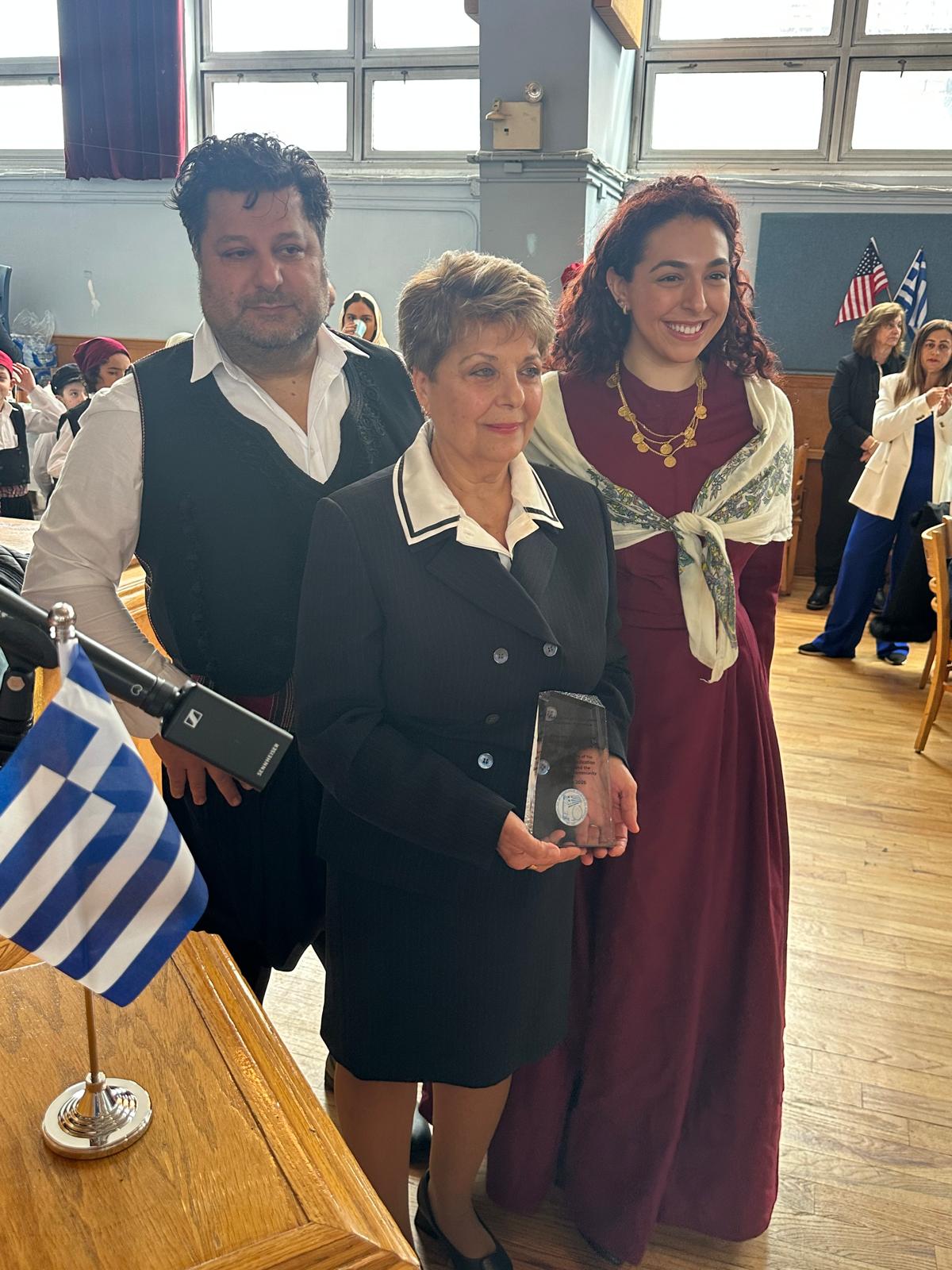 Ο Πρόεδρος έκανε επίσης ειδική αναφορά στον αείμνηστο Αντώνη Βεζυρόπουλο, τον Καλύμνιο βοσκό των Ιμίων, τονίζοντας ότι η ζωή και η δράση του αποτελούν σύμβολο της διαχρονικής ελληνικής παρουσίας στα νησιωτικά σύνορα και ενσαρκώνουν τη δωδεκανησιακή ψυχή και τις αξίες της. “Στο πρόσωπό του κυρίου Αντώνη, τιμούμε όλους τους Δωδεκανήσιους, όλους τους Έλληνες που με τη ζωή τους διασφαλίζουν την επιτήρηση και την προστασία της ελληνικής επικράτειας, με κάθε τρόπο – ακόμη κι αν πρόκειται για την τελευταία βραχονησίδα.” ανέφερε ο Πρόεδρος της Δωδεκανησιακής Ομοσπονδίας Αμερικής κ. Νίκος Καρτάλης. Στη συνέχεια παρουσίασε την οικογένεια του αειμνήστου — την κόρη του Σεβαστή Παντελή, τον μικρότερο γιο του Μίκη Βεζυρόπουλο και τη δισέγγονή του Ειρήνη Πανοπούλου — οι οποίοι παρέλαβαν την τιμητική διάκριση στη μνήμη του εκ μέρους της Δωδεκανησιακής Ομοσπονδίας Αμερικής. Η δισέγγονη του κ. Βεζυρόπουλου διάβασε μια σύντομη βιογραφία του προπάππου της, ενώ η κόρη του κ. Παντελή εξέφρασε τη συγκίνησή της για την τιμή προς τον πατέρα της.