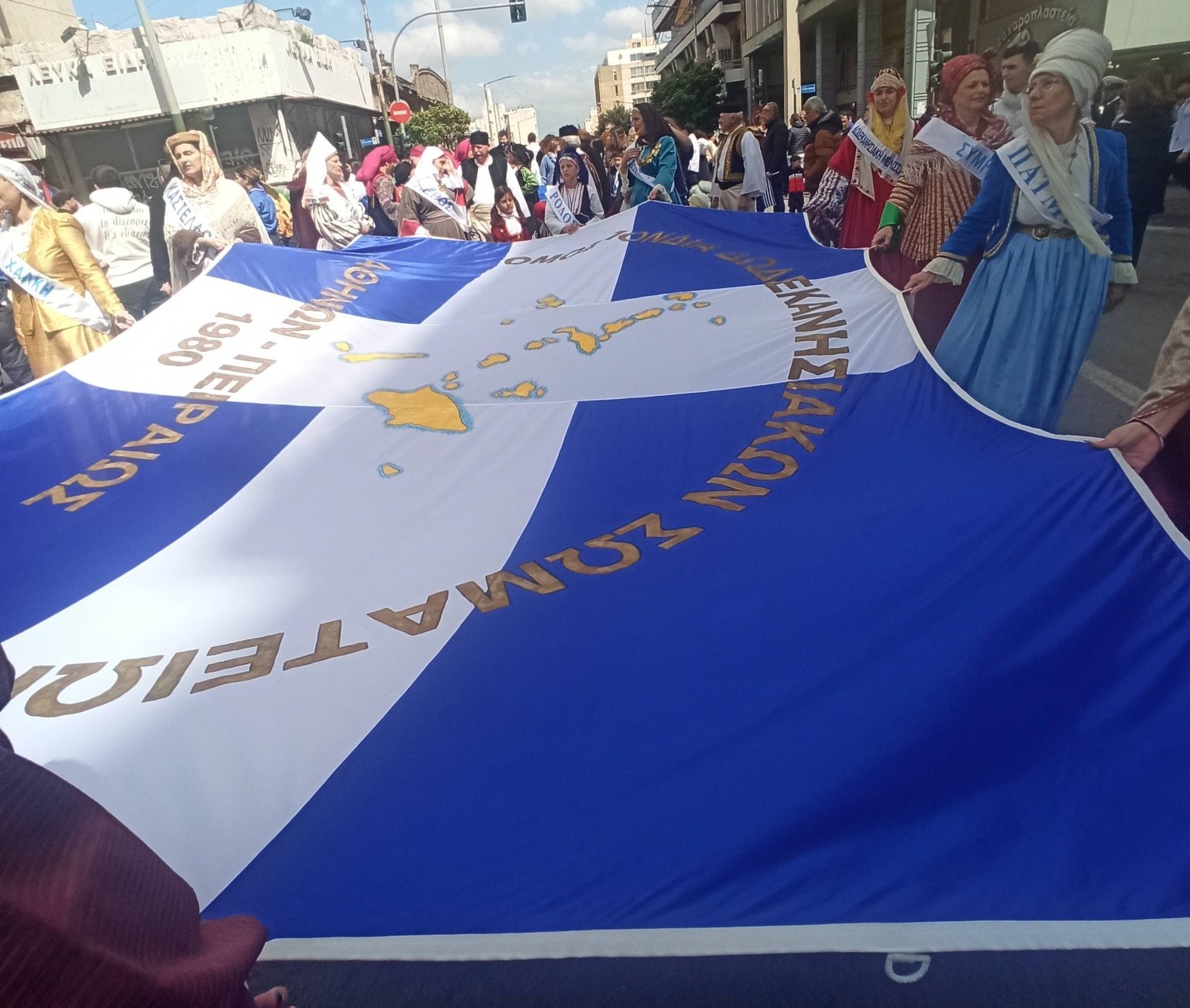 Οι νέοι και οι νέες της Δωδεκανήσου συγκεντρώθηκαν από νωρίς στη Δωδεκανησιακή μας Εστία, για ένα κέρασμα και μετά συνοδευόμενοι από τον πρόεδρο κ. Γιάννη Φραγκούλη και μέλη του ΔΣ της Ομοσπονδίας μας καθώς και από προέδρους και μέλη λοιπών φορέων κκ Φωτεινή Ασβεστά, Μανωλή Κολεζάκη, Χάρη Χατζόπουλο, Νίκο Φλυτζάνη, Μαρία Κορδίνα, Άννα Κορωναίου, Καλλοτίνα Σκυλλά, Ισαβέλλα Οικονομίδου, Λήδα Μαρία, Ερρίκο Γιαλλουράκη και Γρηγόρη Χατζηαντωνίου μετέβησαν στο χώρο αφετηρίας της παρέλασης. Ο καιρός ήταν εξαιρετικός και πάρα πολλοί Πειραιώτες βρέθηκαν στους δρόμους, καθ΄ όλο το μήκος της παρέλασης, χειροκροτώντας με ενθουσιασμό, δείχνοντας την ανάγκη τους για ένα ξέσπασμα στις δύσκολες μέρες, που όλοι βιώνουμε.