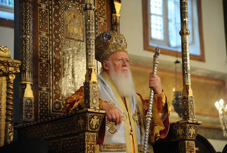 Ο Πατριάρχης Κωνσταντινουπόλεως καταλαμβάνει την έδρα που κατείχε προηγουμένως ο Πάπας Βενέδικτος ΙΣΤ’ (Joseph Ratzinger).