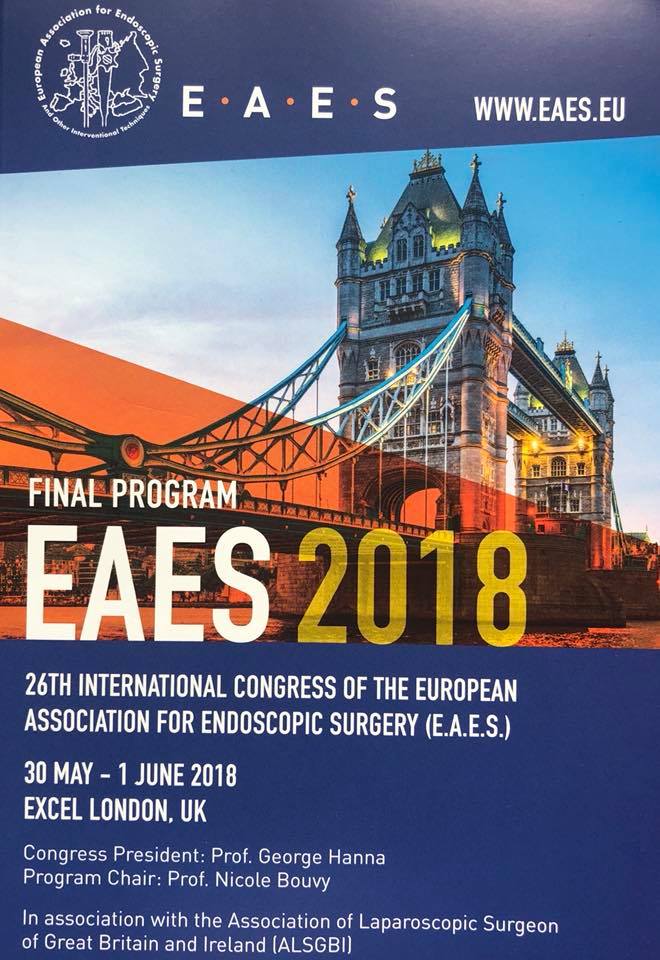 Με τις εφαρμογές της υπερσύγχρονης ιατρικής τεχνολογίας στην Ελάχιστα Τραυματική Χειρουργική να πρωτοστατούν ως κεντρικό θέμα, πραγματοποιήθηκε φέτος με μεγάλη επιτυχία το 26ο Διεθνές Συνέδριο Λαπαροενδοσκοπικης Χειρουργικής της Ευρωπαϊκής Εταιρείας Ενδοσκοπικής Χειρουργικής (European Association of Endoscopic Surgery), “EAES2018”, στο Λονδίνο, στις 30 Μαΐου με 1 Ιουνίου, 2018.